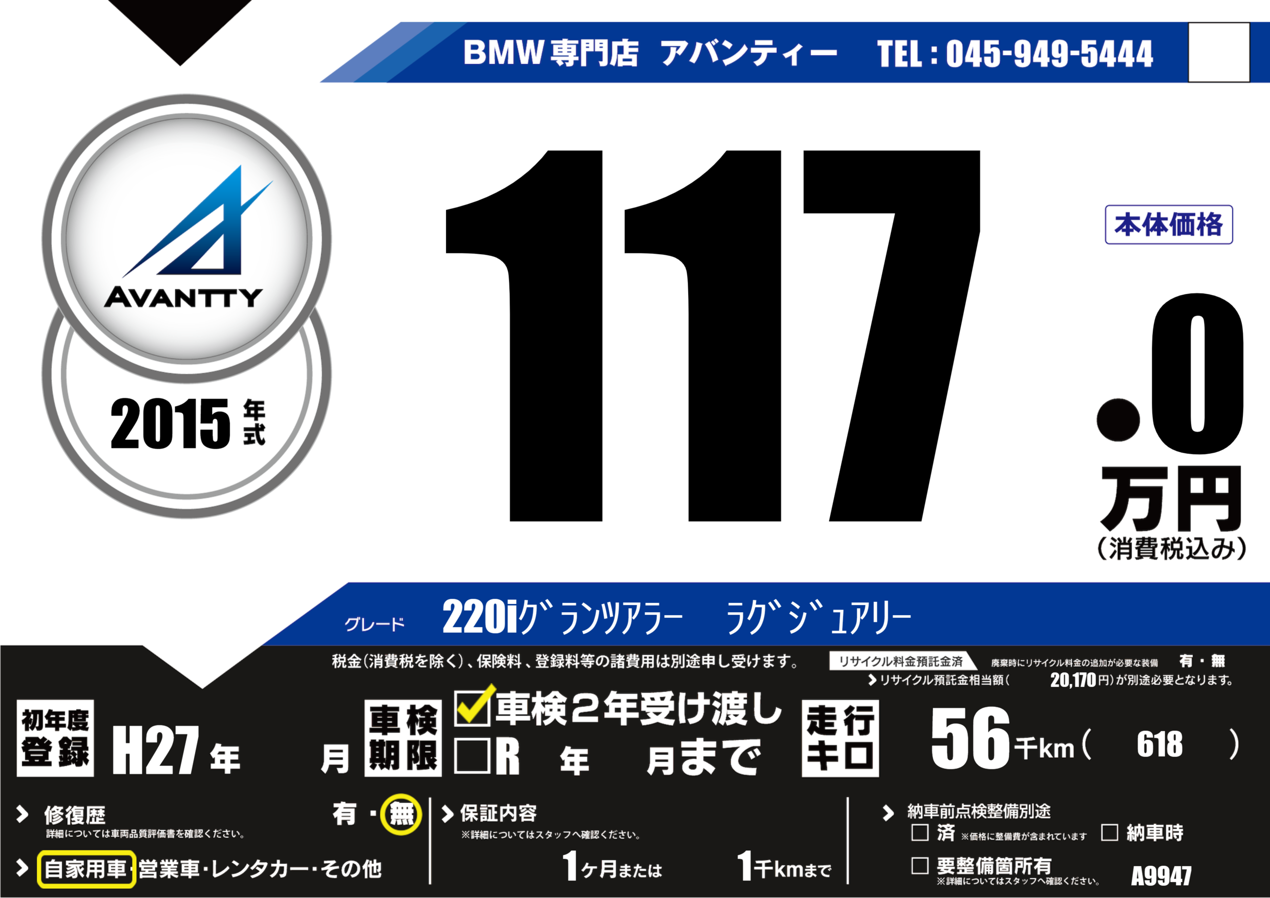 | 走行キロ | 5.6万km | 初年度登録 | H27年---月 |