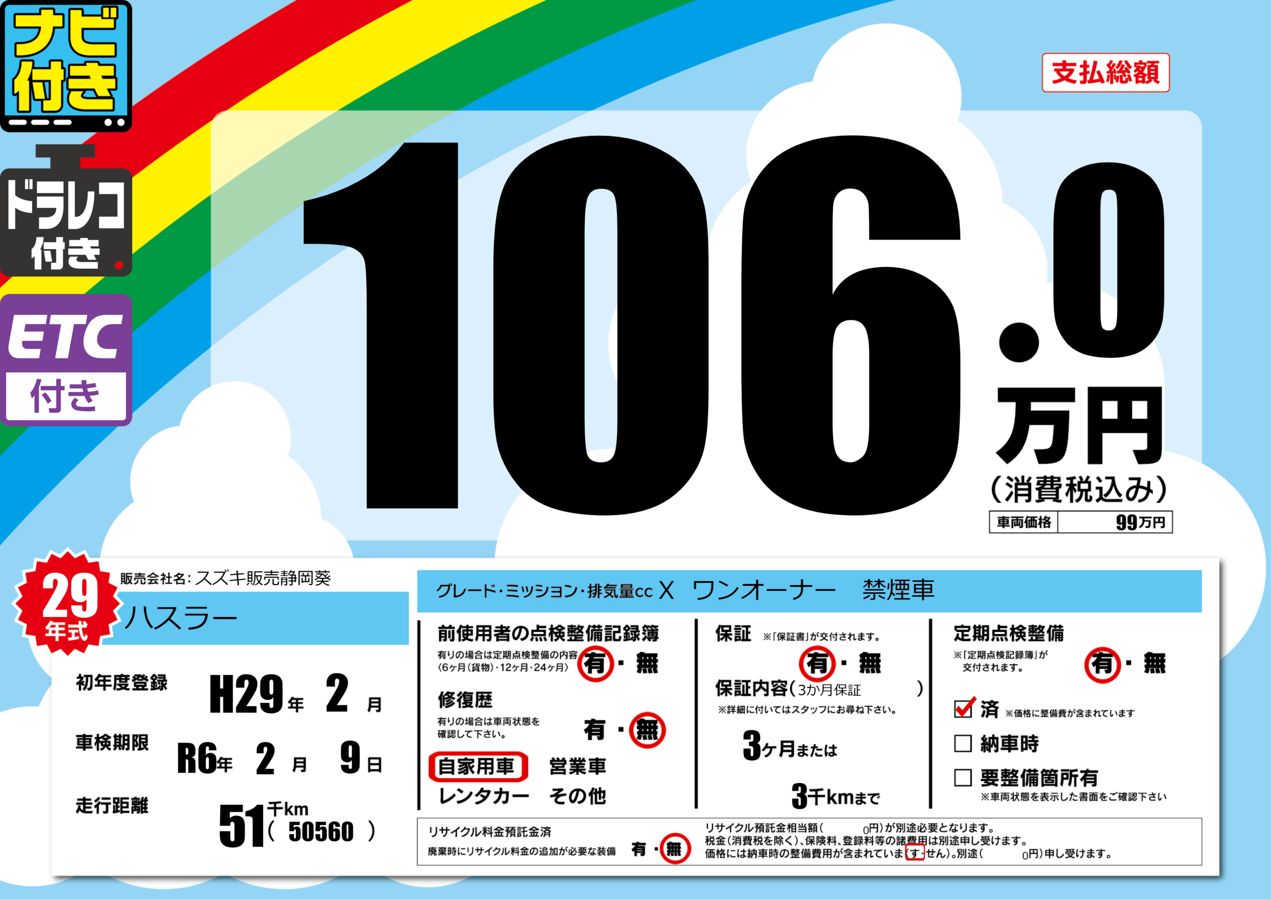| 車名 | ハスラー | グレード ミッション 排気量 |
