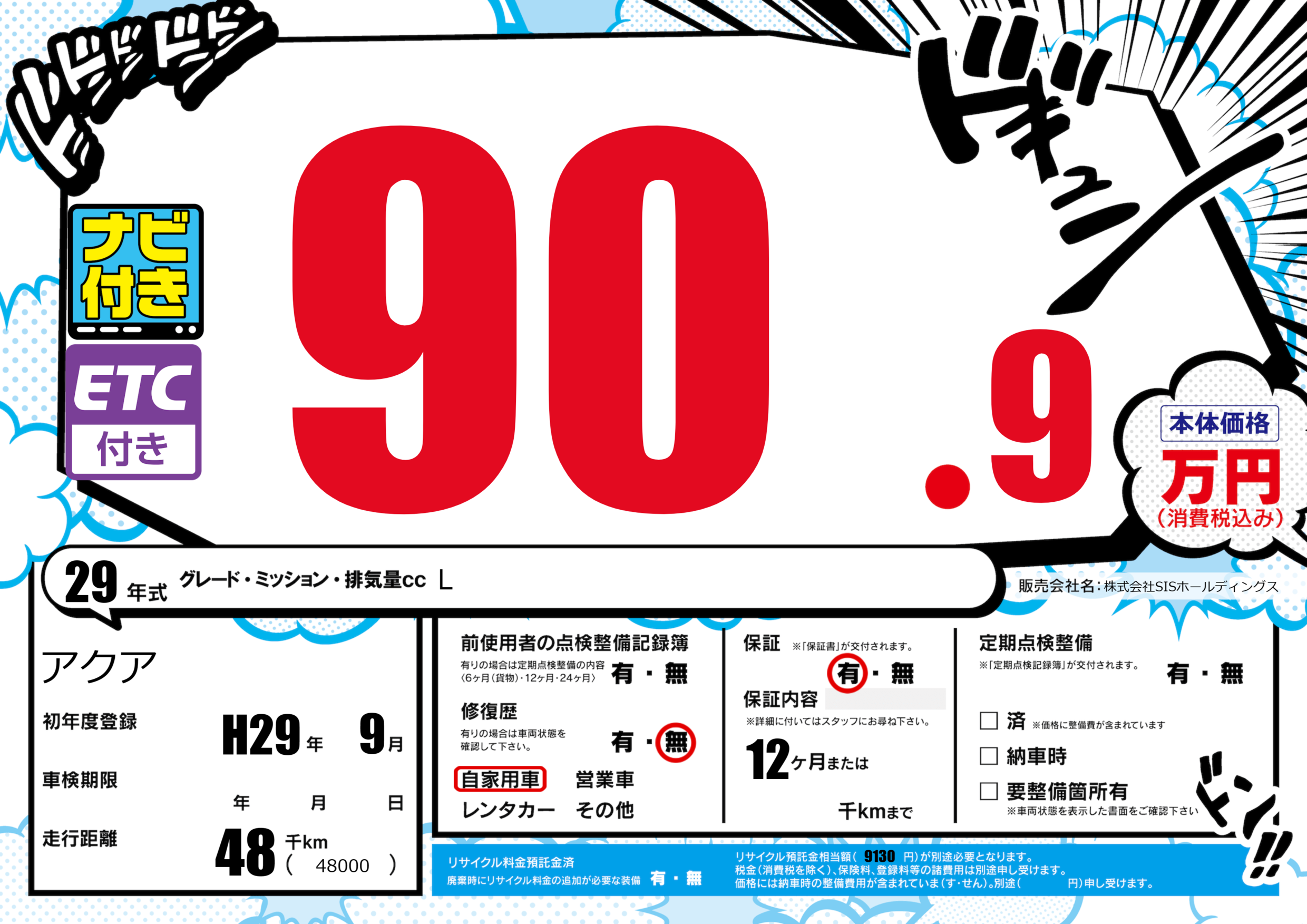 | 走行キロ | 4.8万km | 初年度登録 | H29年9月 |