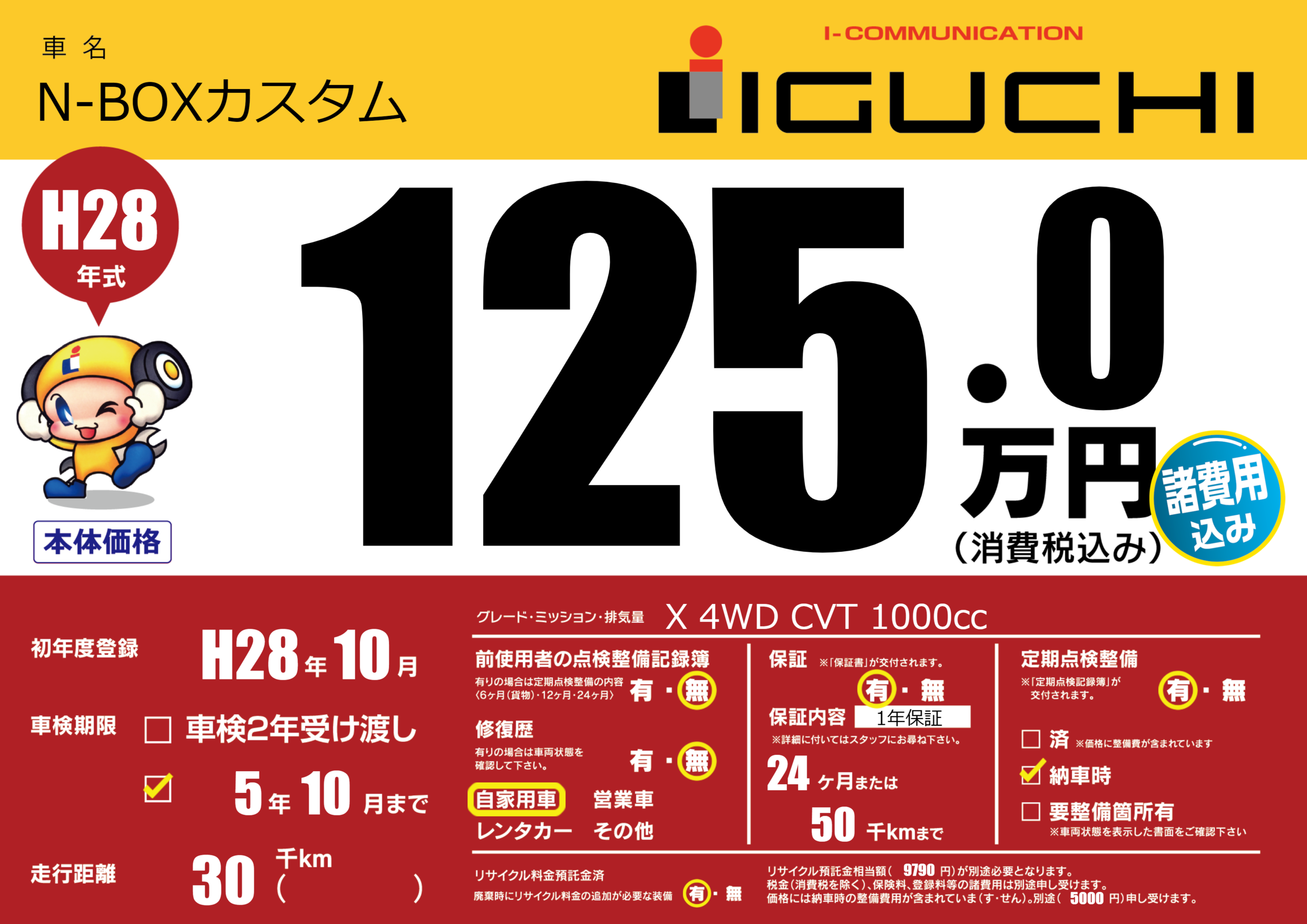 | 走行キロ | 3万km | 初年度登録 | H28年10月 |