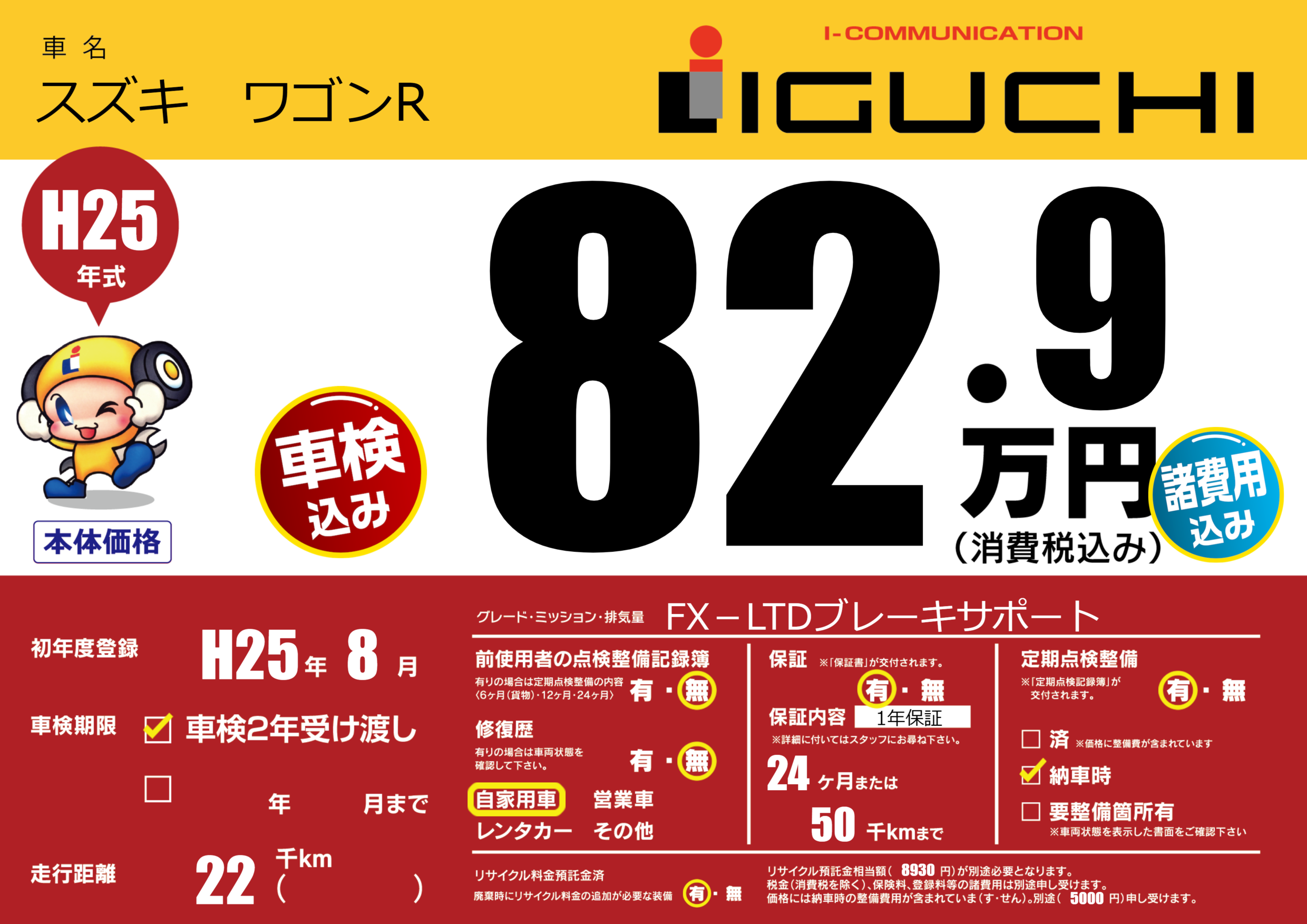 | 車名 | スズキ ワゴンR | グレード ミッション 排気量 |