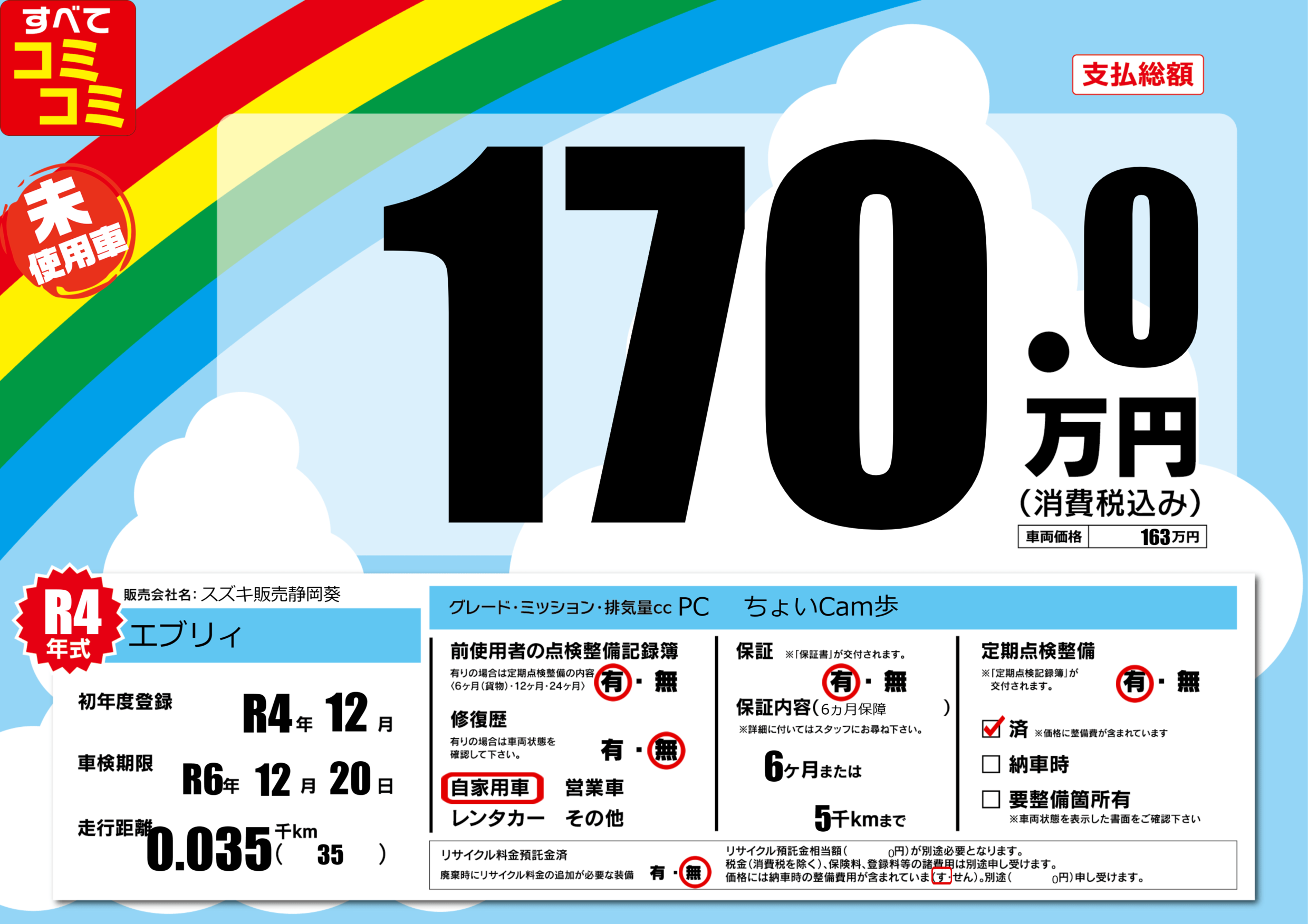 | 定期点検整備 | 定期点検整備あり 定期点検整備済み | ||