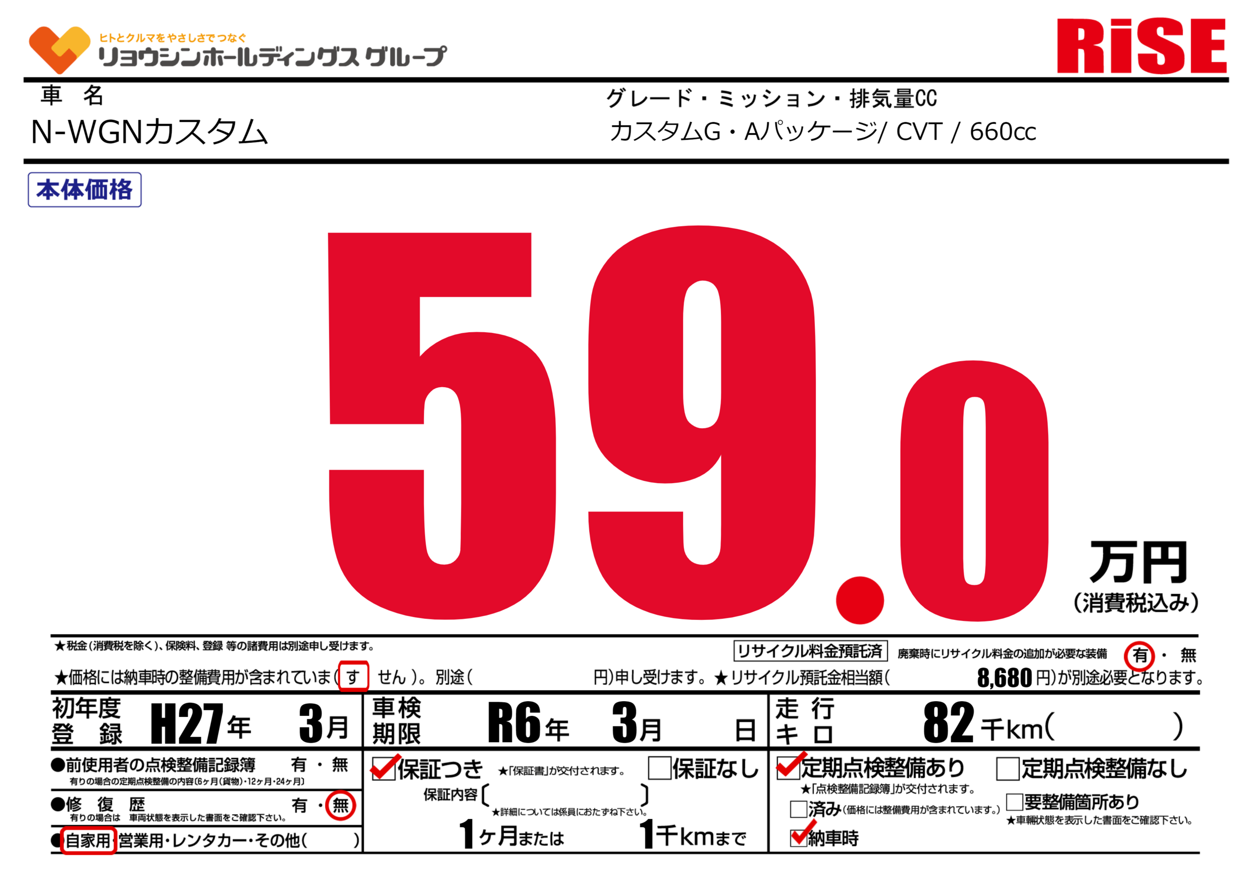 | 車名 | N-WGNカスタム | グレード ミッション 排気量 |