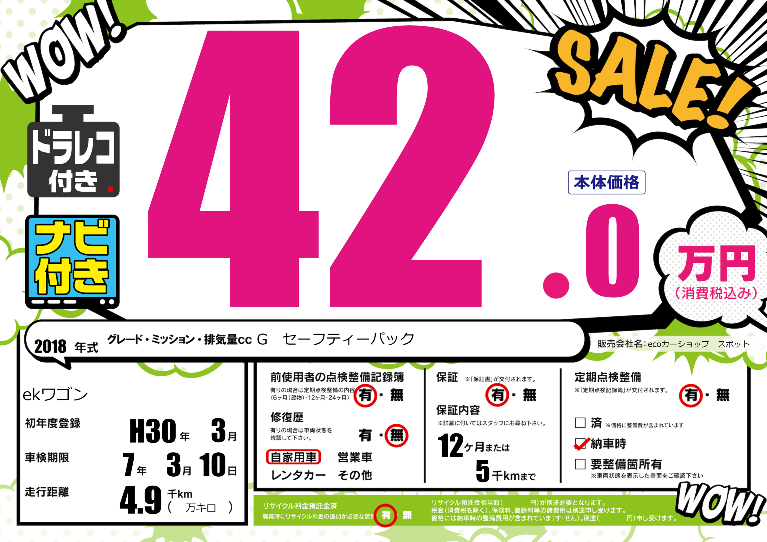 | 車名 | ekワゴン | グレード ミッション 排気量 |