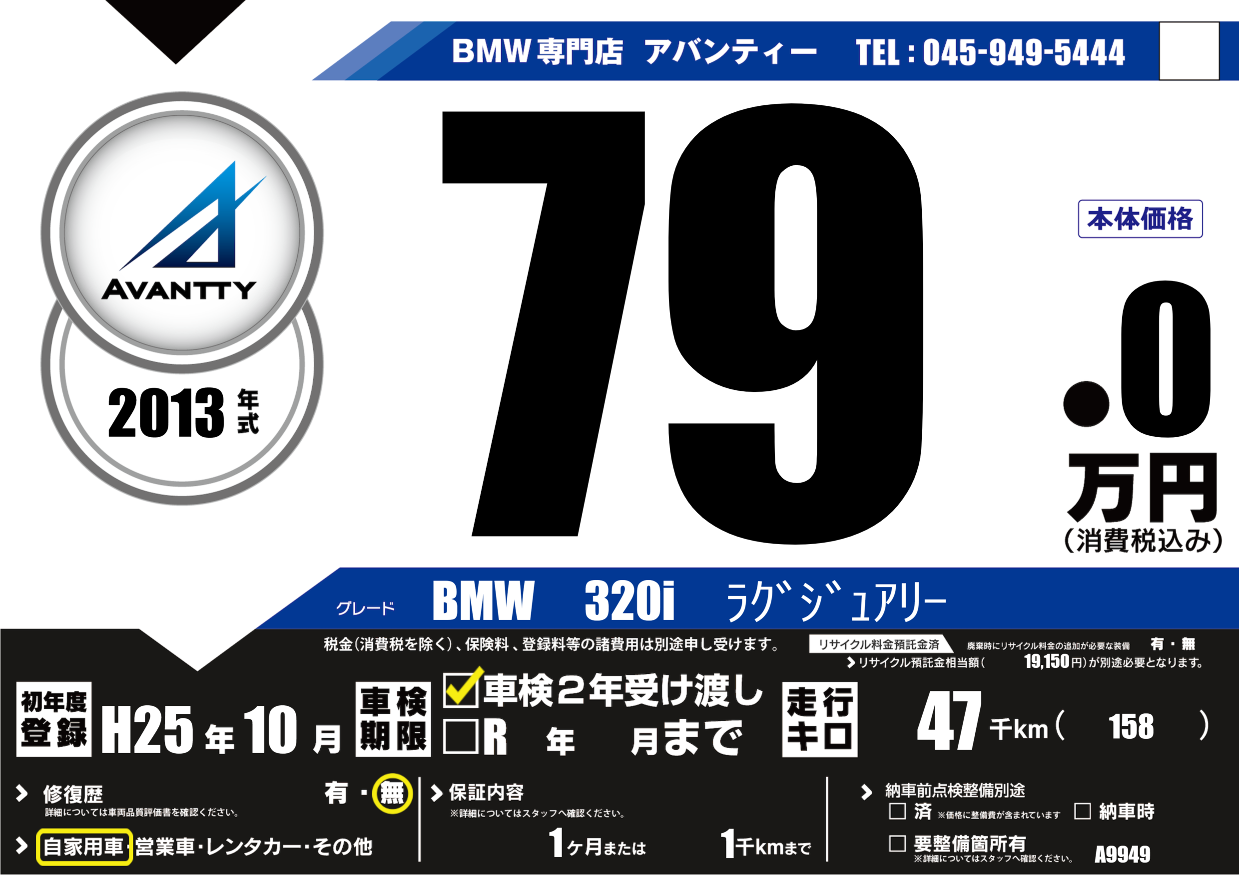 | 走行キロ | 4.7万km | 初年度登録 | H25年10月 |