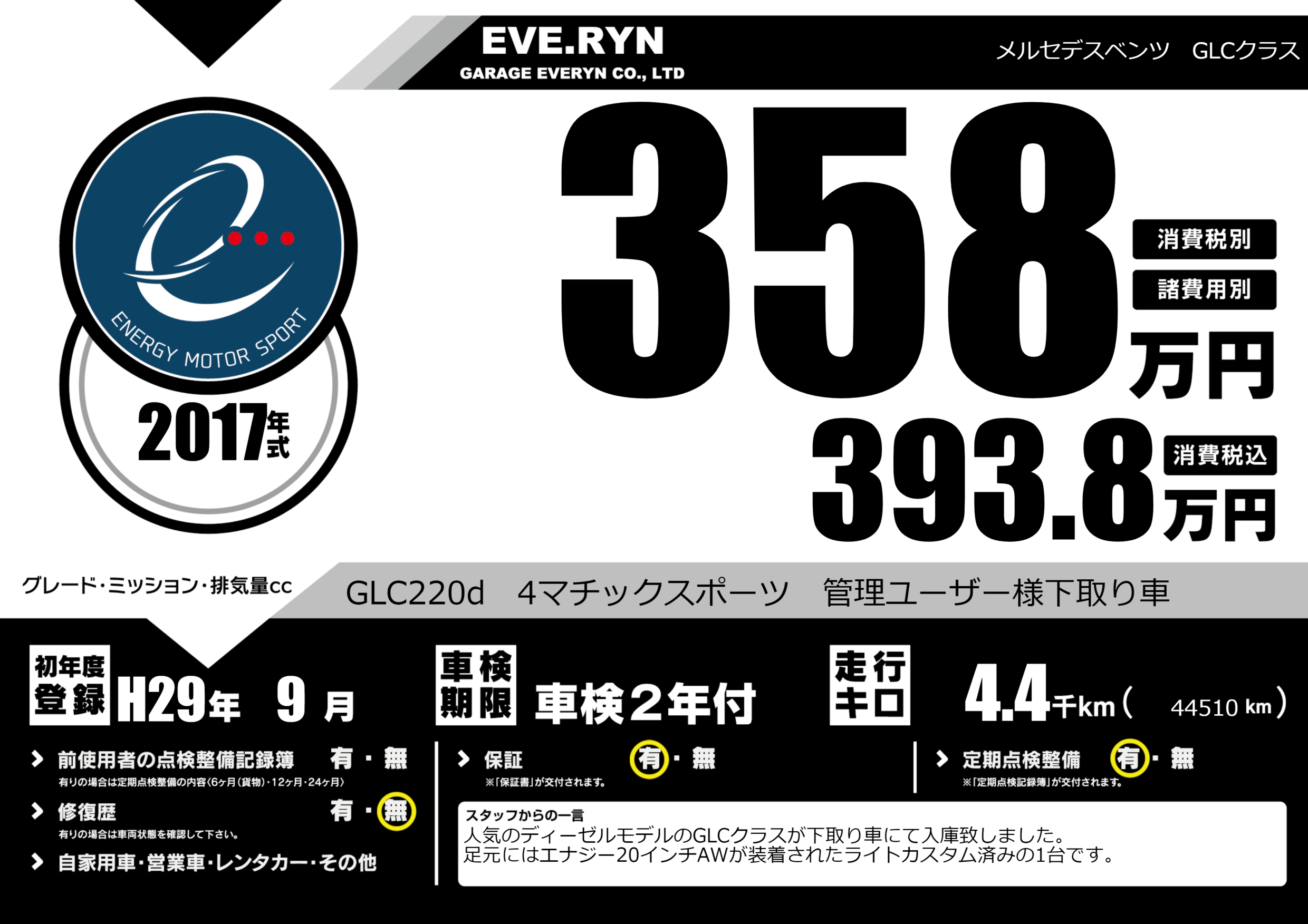 GLC220d 4マチックスポーツ 管理ユーザー様下取り車 |