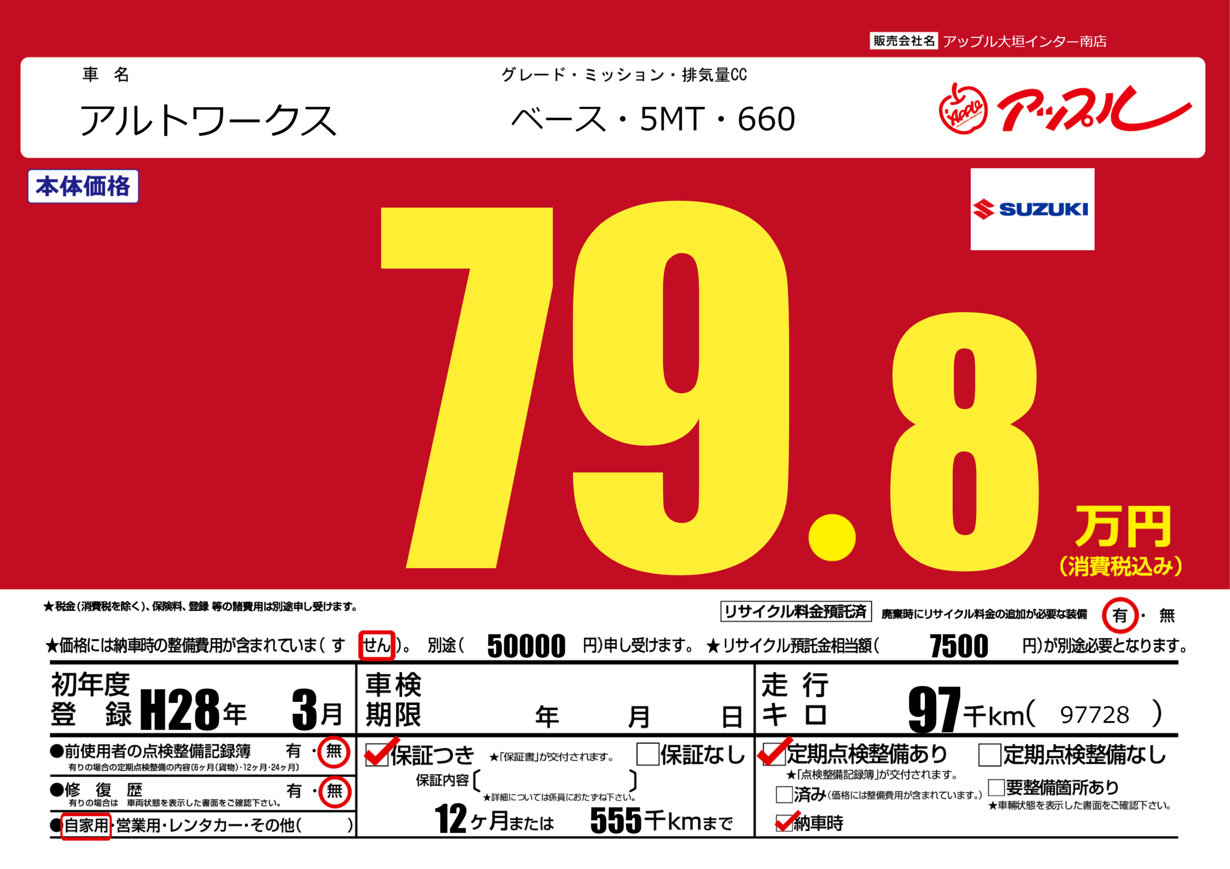 | 車名 | アルトワークス | グレード ミッション 排気量 |