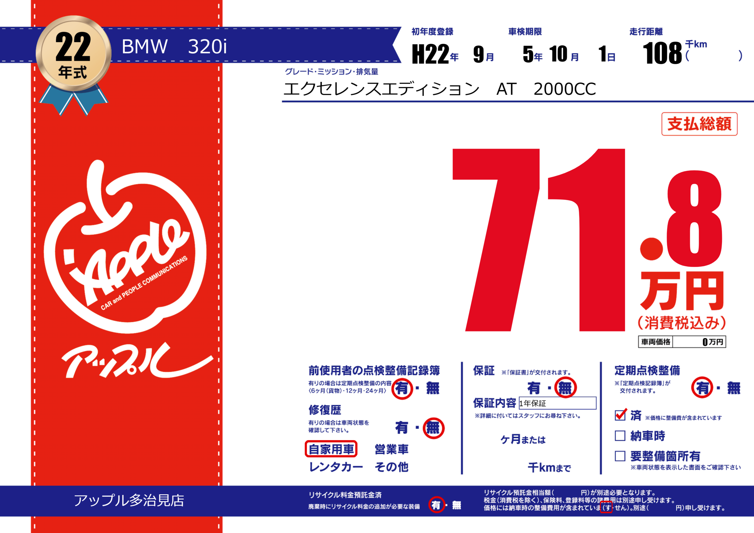 | 定期点検整備 | 定期点検整備あり 定期点検整備済み | ||