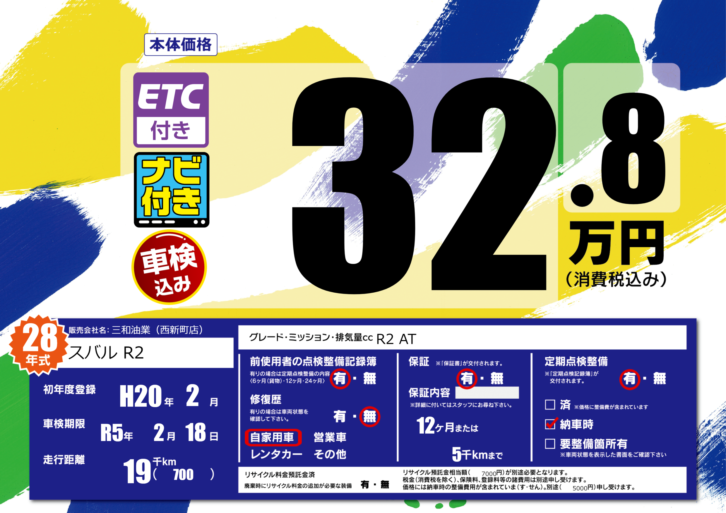 | 車名 | スバル R2 | グレード ミッション 排気量 |