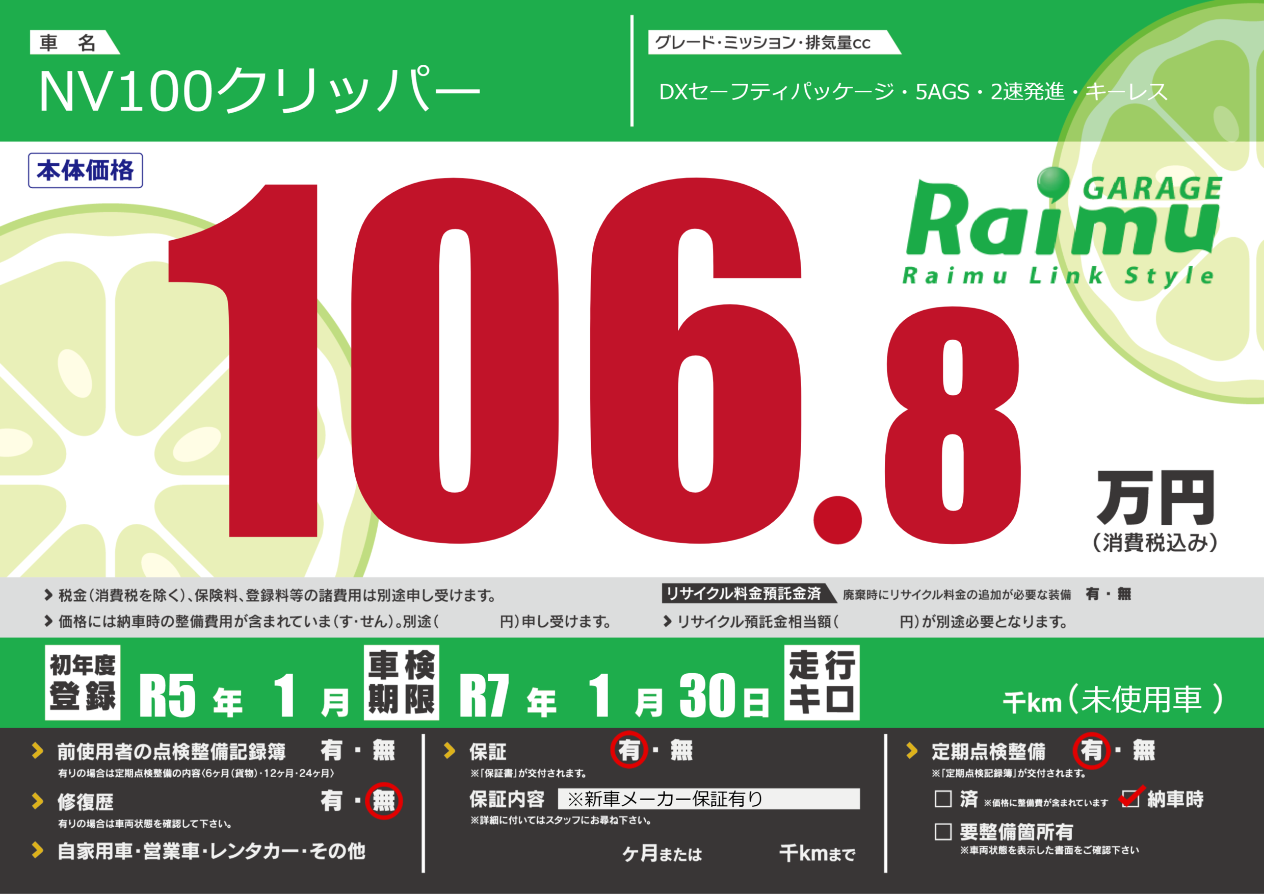 | 車名 | NV100クリッパー | グレード ミッション 排気量 |