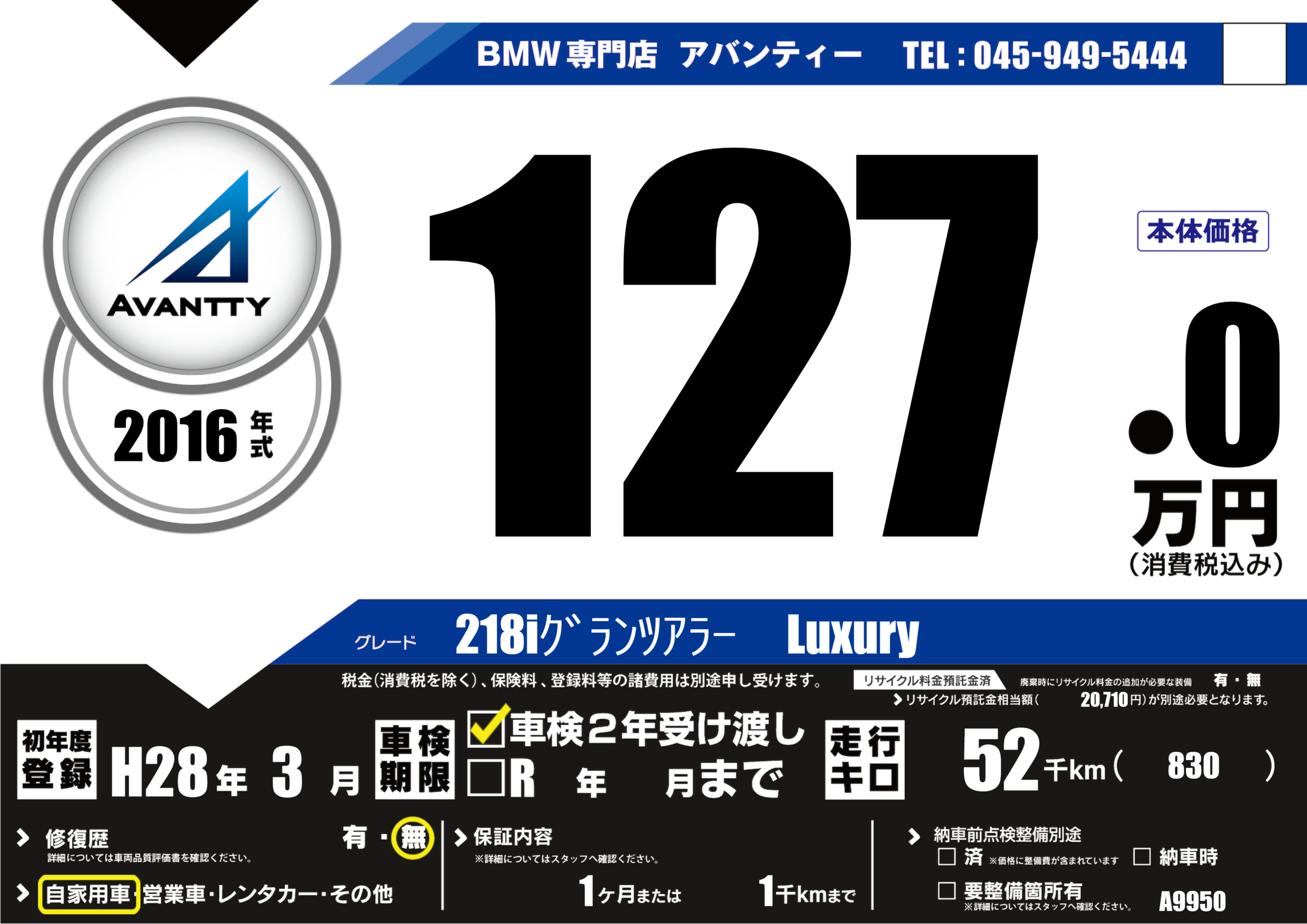 | 初年度登録 | H28年3月 | ||