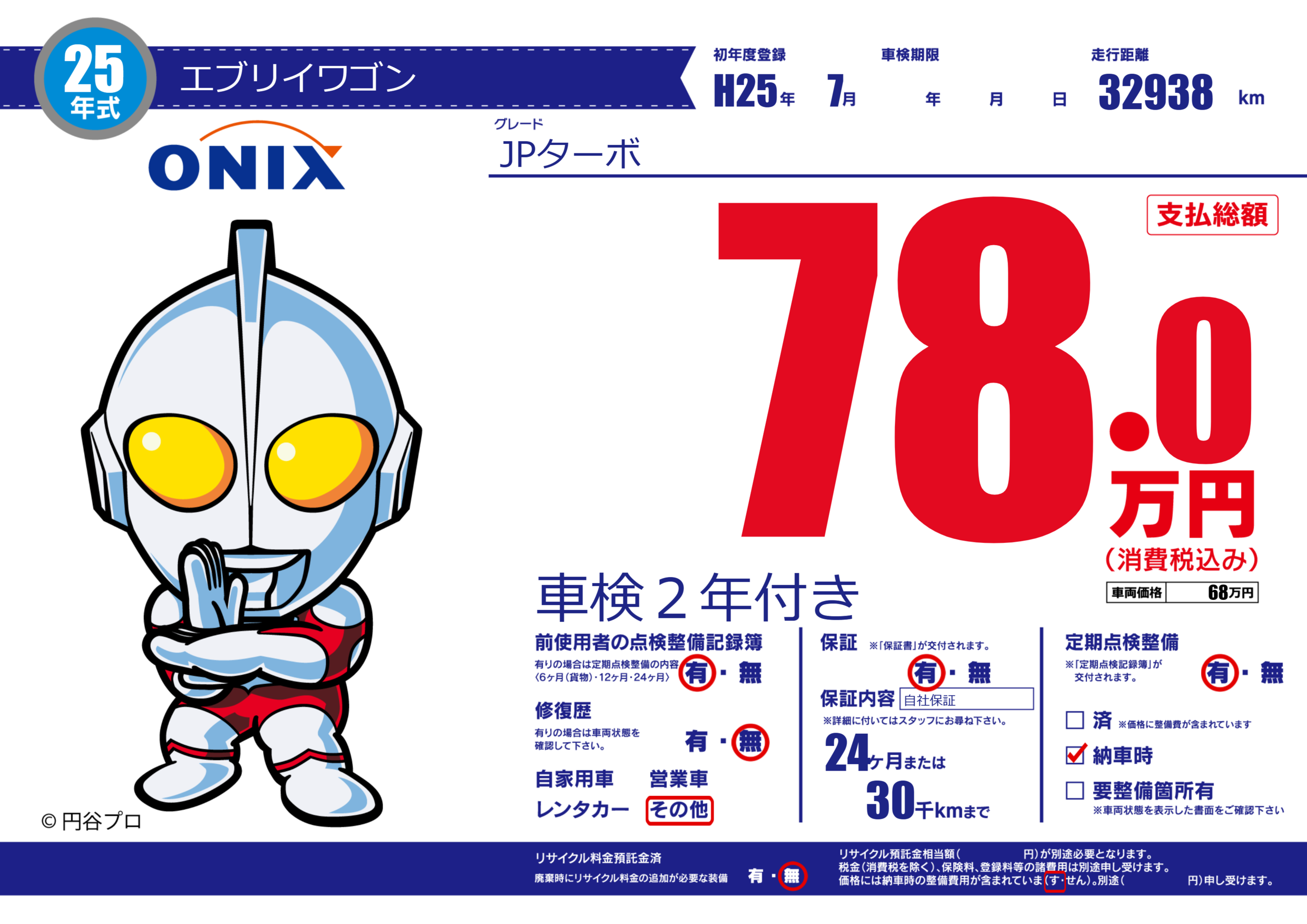 | 走行キロ | 3293.8万km | 初年度登録 | H25年7月 |