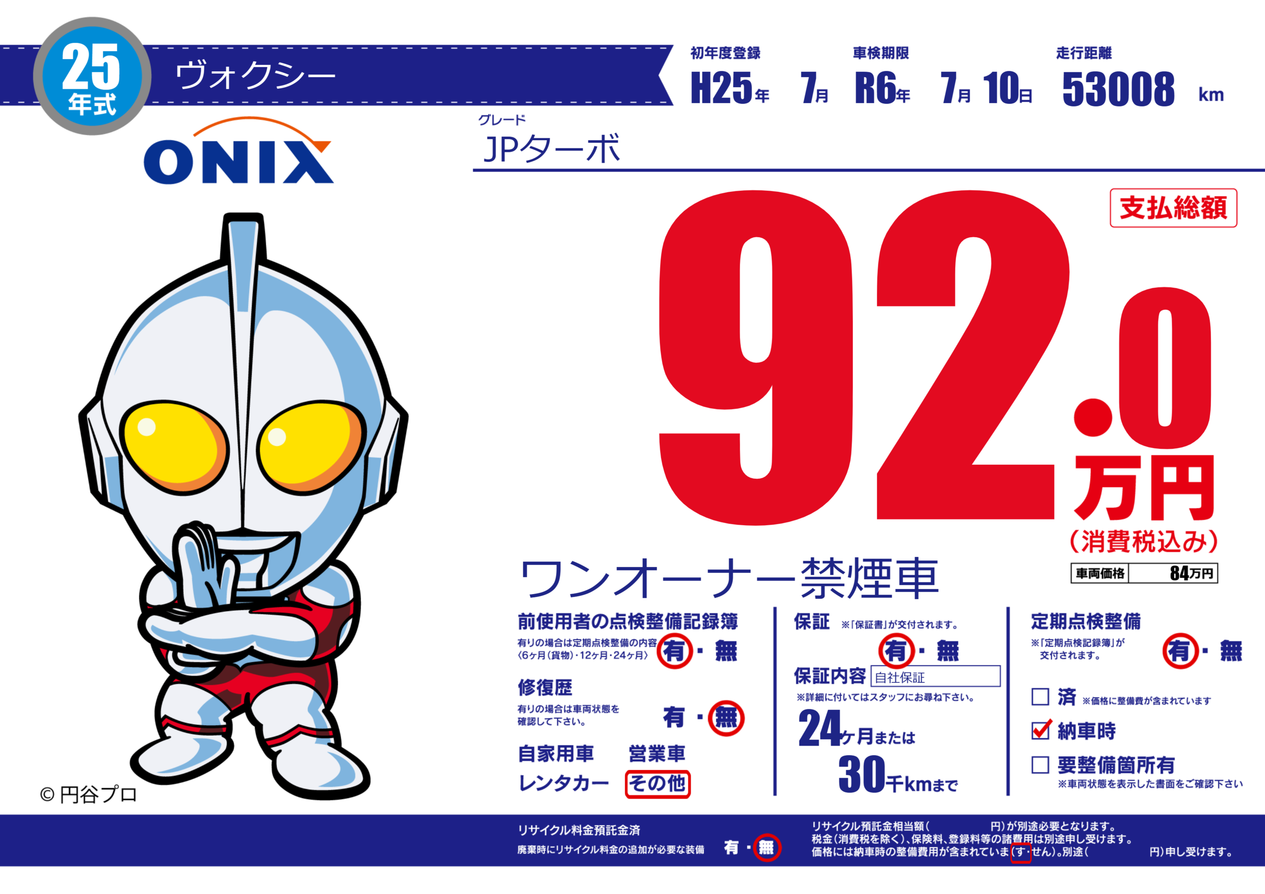 | 走行キロ | 5300.8万km | 初年度登録 | H25年7月 |
