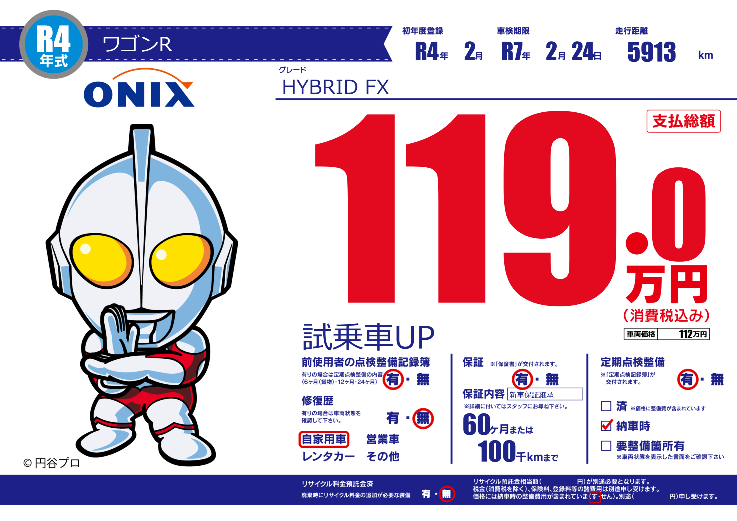 | 走行キロ | 591.3万km | 初年度登録 | R4年2月 |