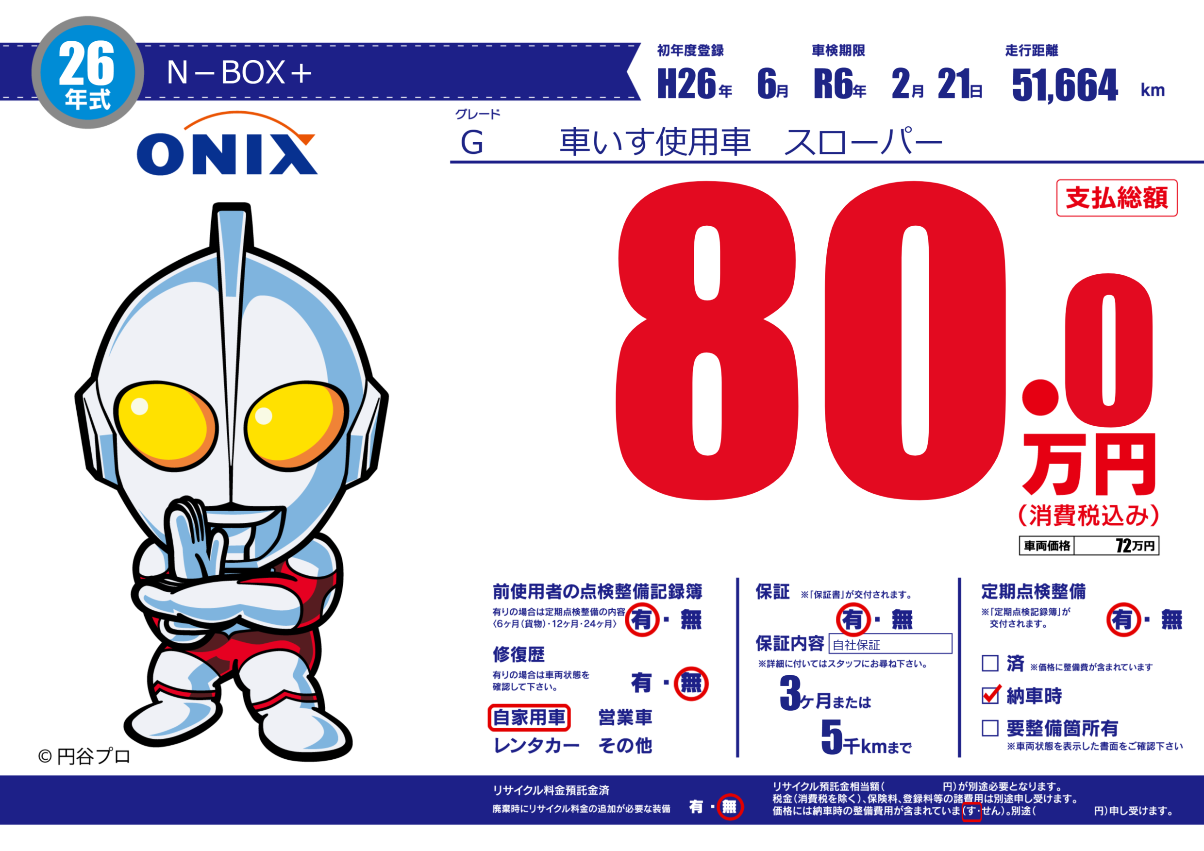 保証付き 保証内容(自社保証) 3ヶ月または(5)千kmまで |