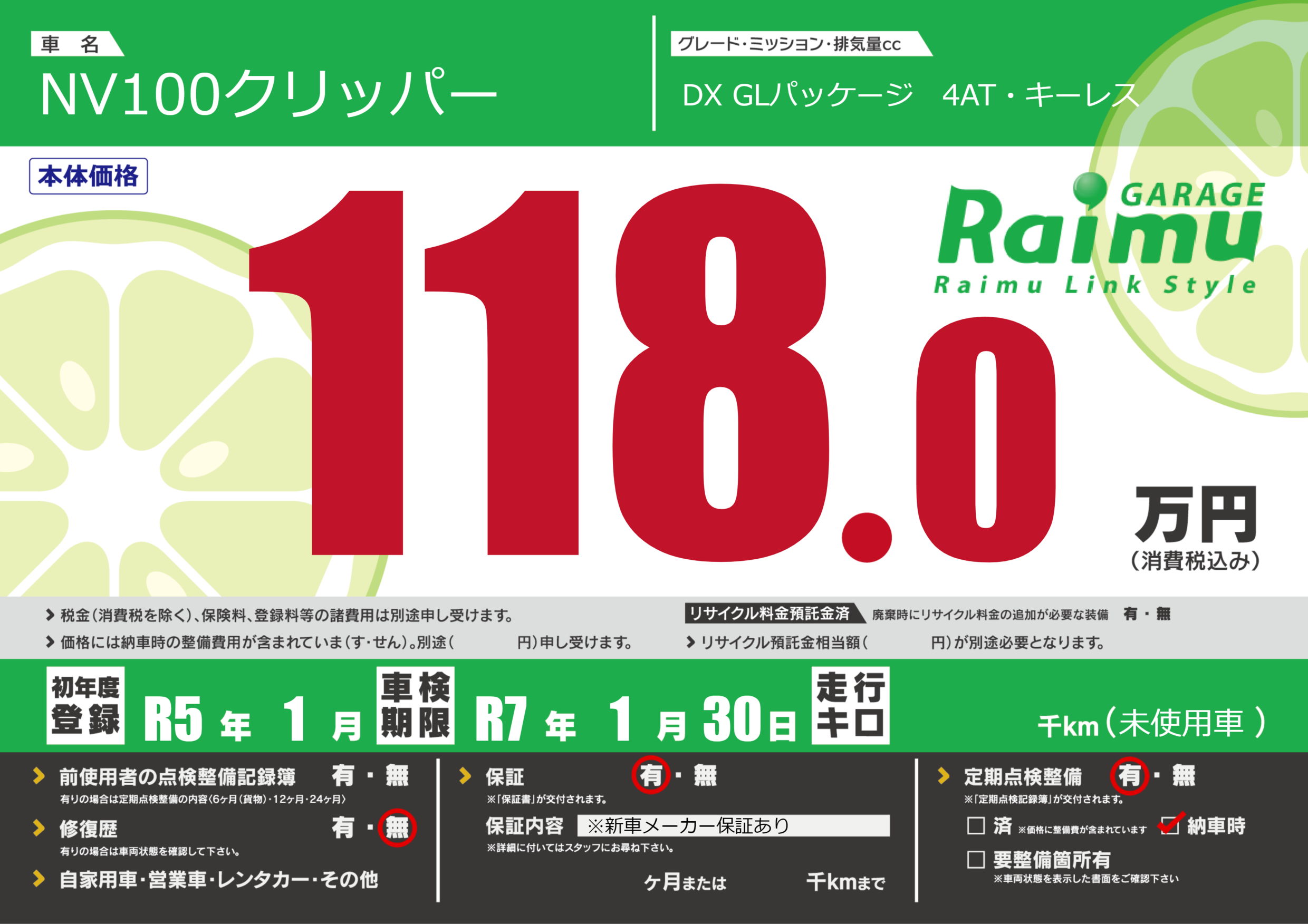 なし | 車検制限 | R7年1月30月 |