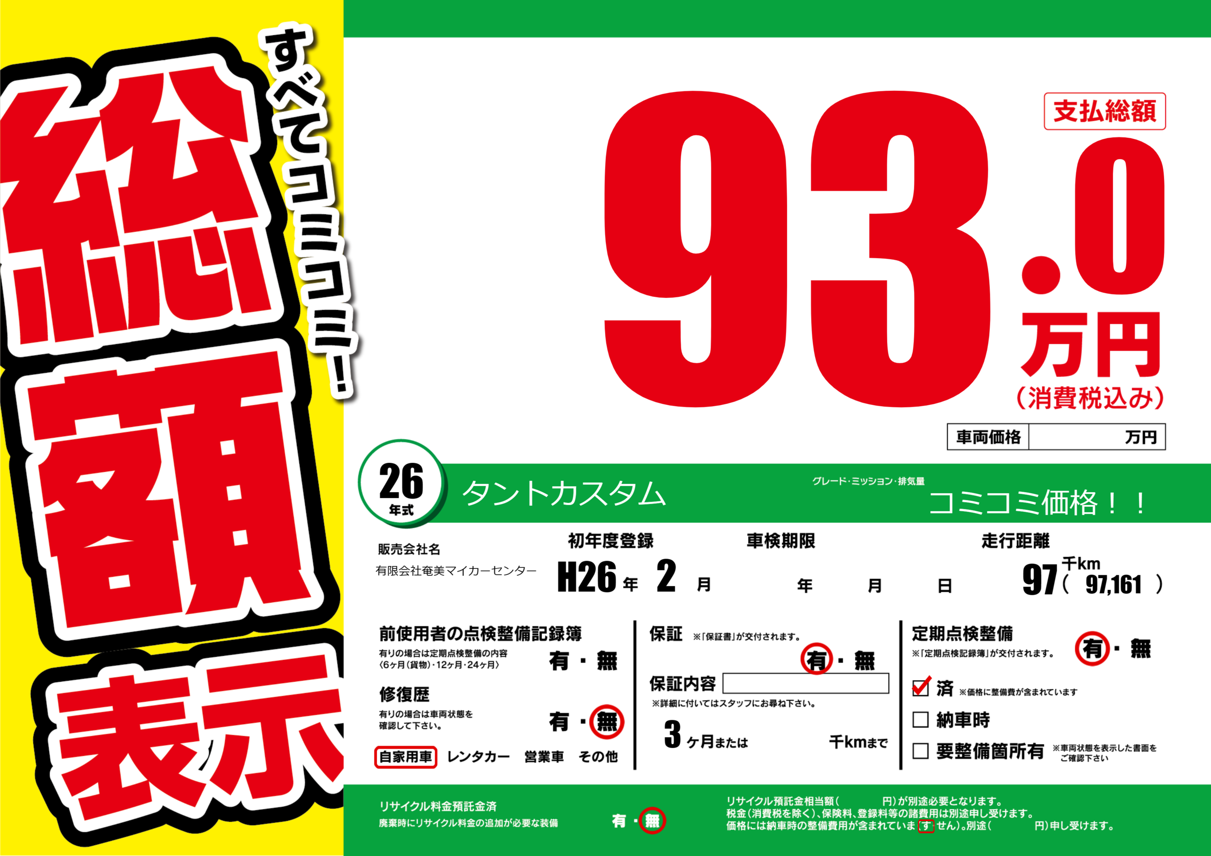 | 定期点検整備 | 定期点検整備あり 定期点検整備済み | ||