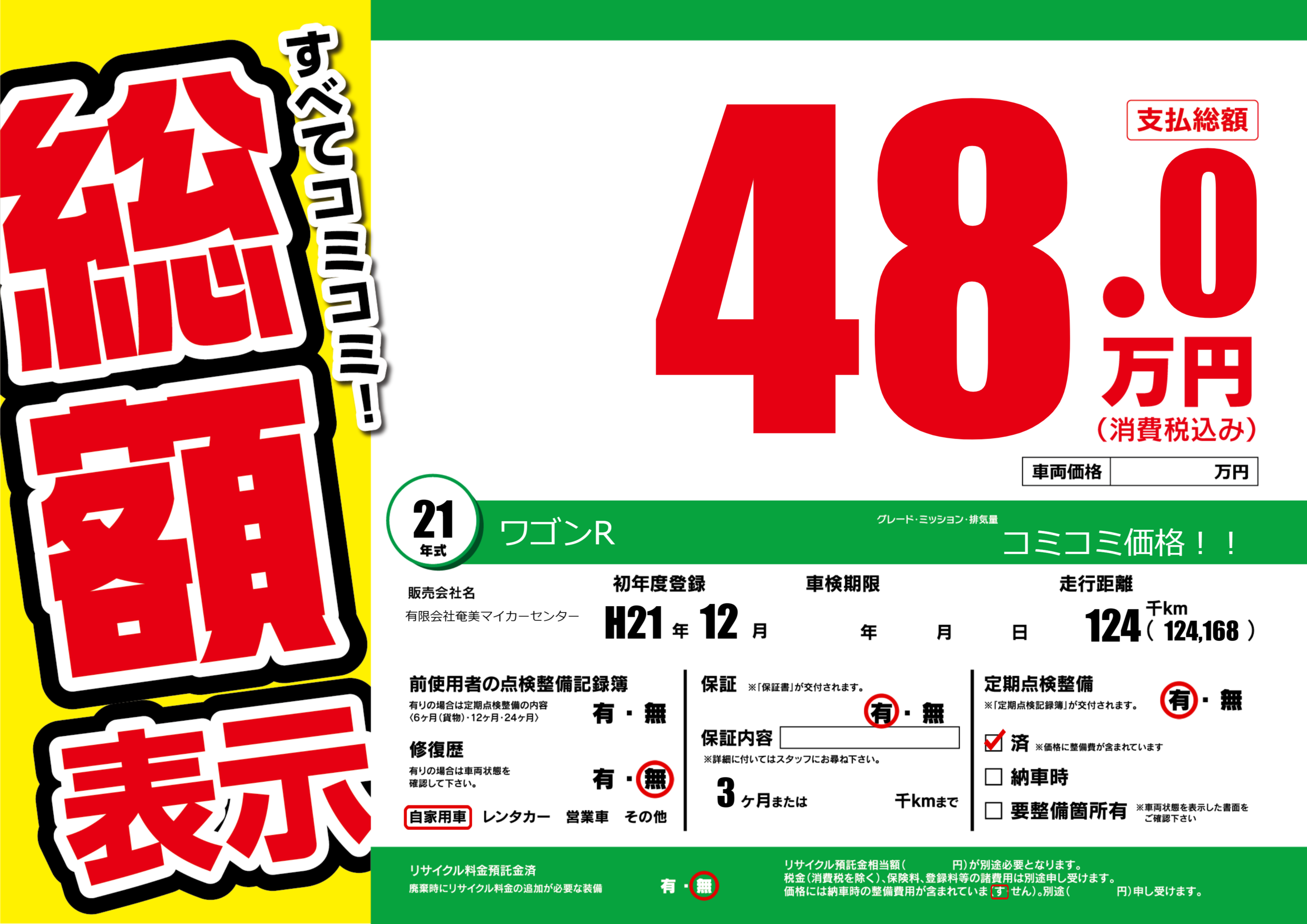 | 定期点検整備 | 定期点検整備あり 定期点検整備済み | ||
