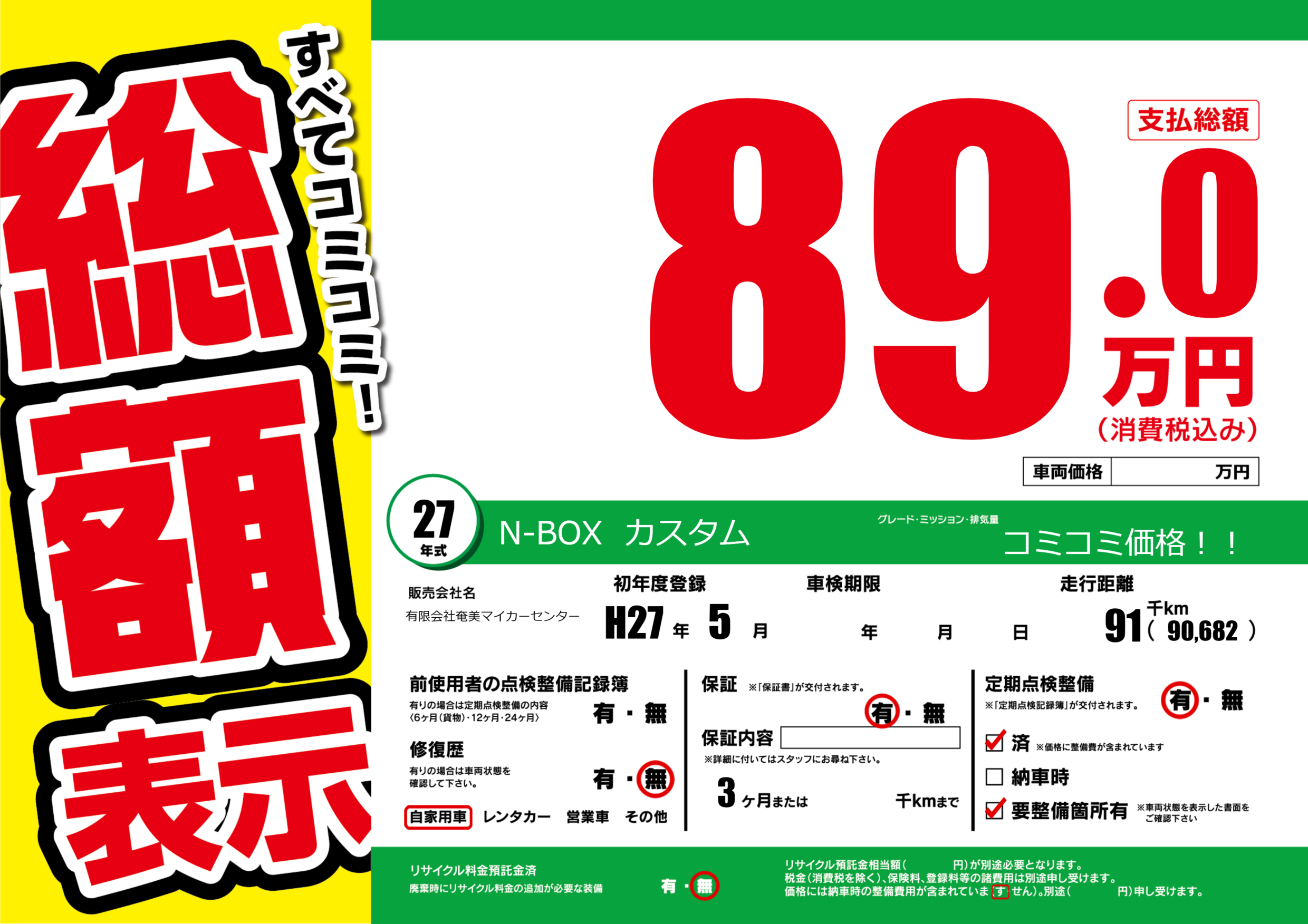 コミコミ価格!! |