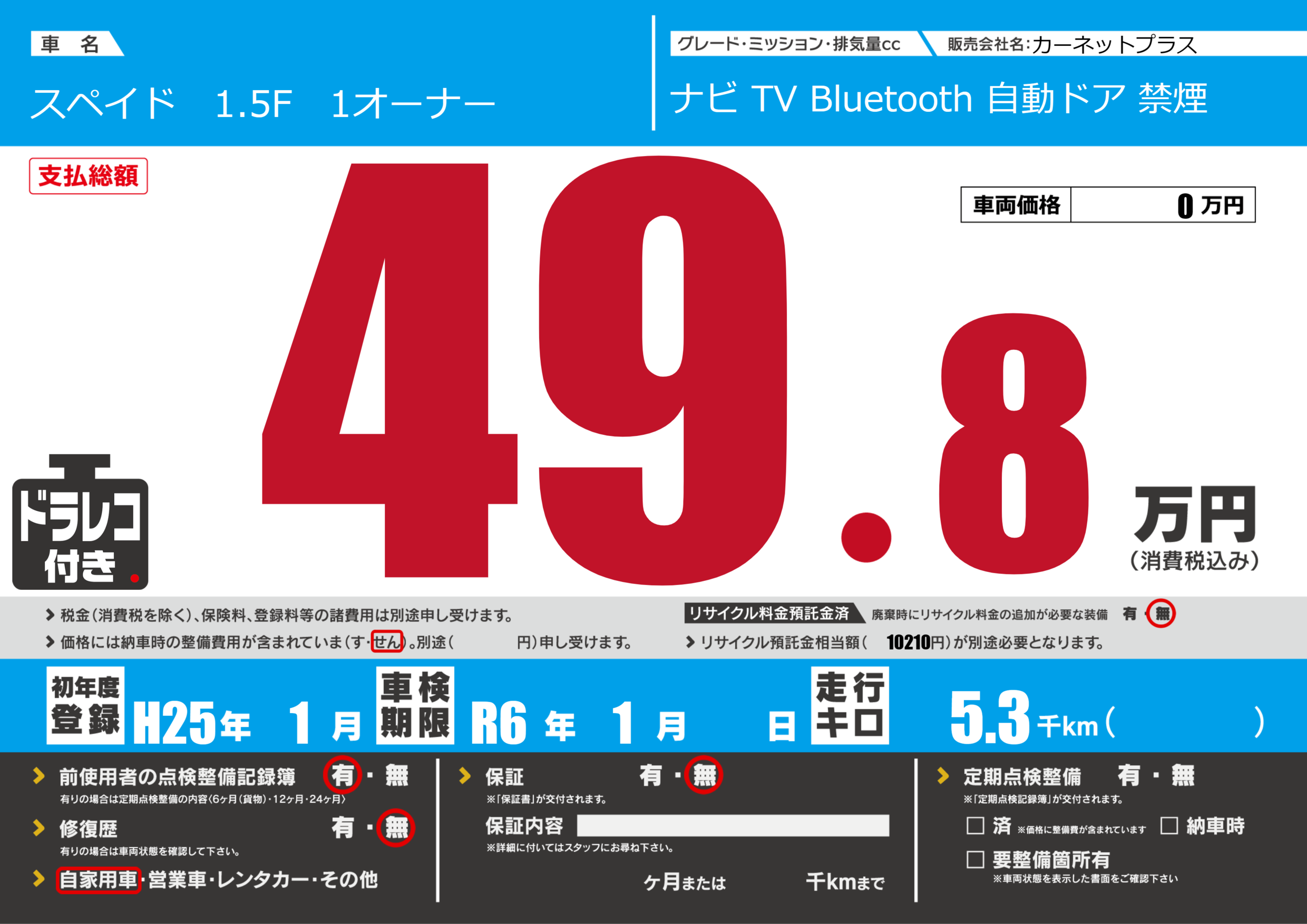 なし | 車検制限 | R6年1月---月 |
