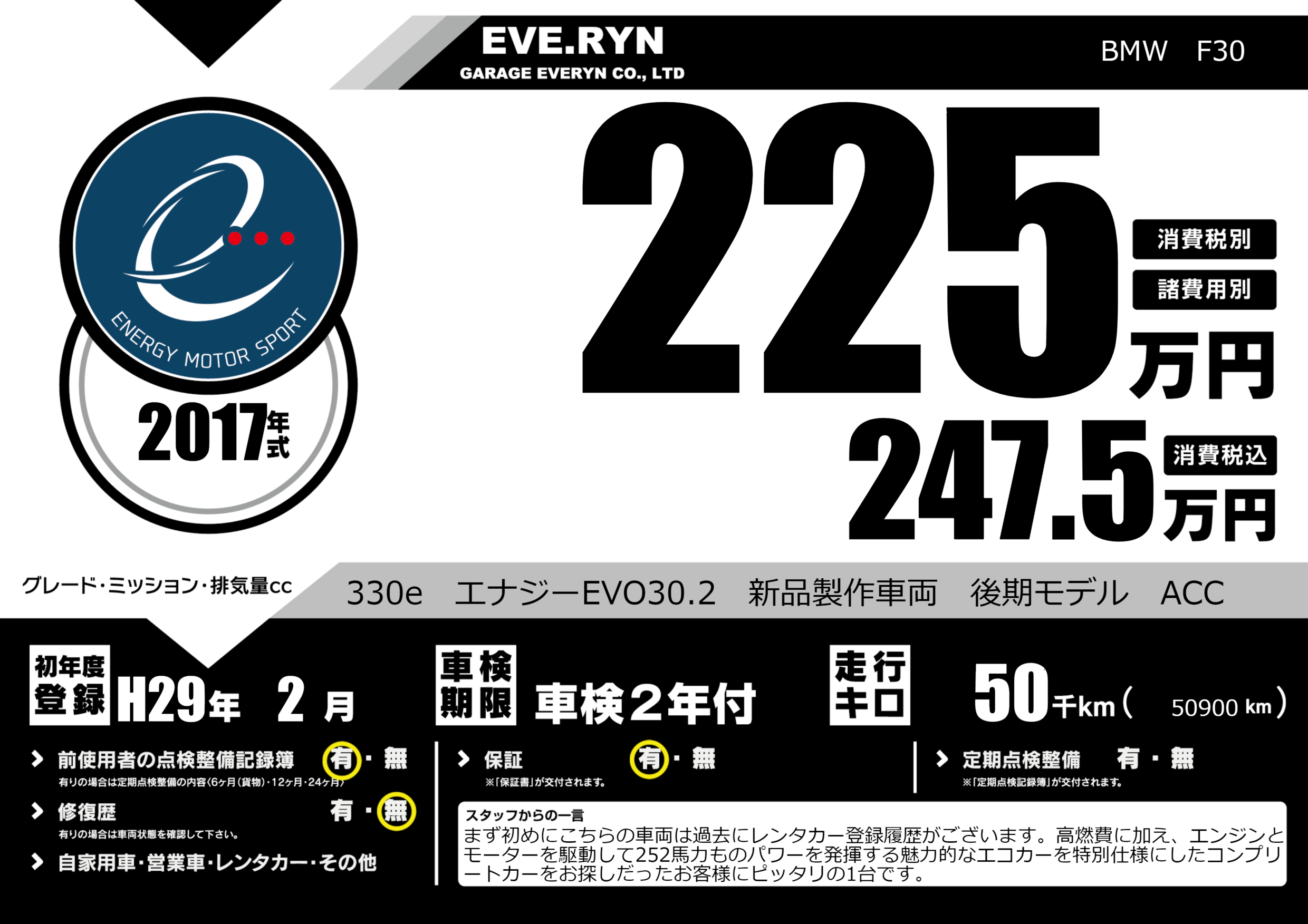 330e エナジーEVO30.2 新品製作車両 後期モデル ACC |