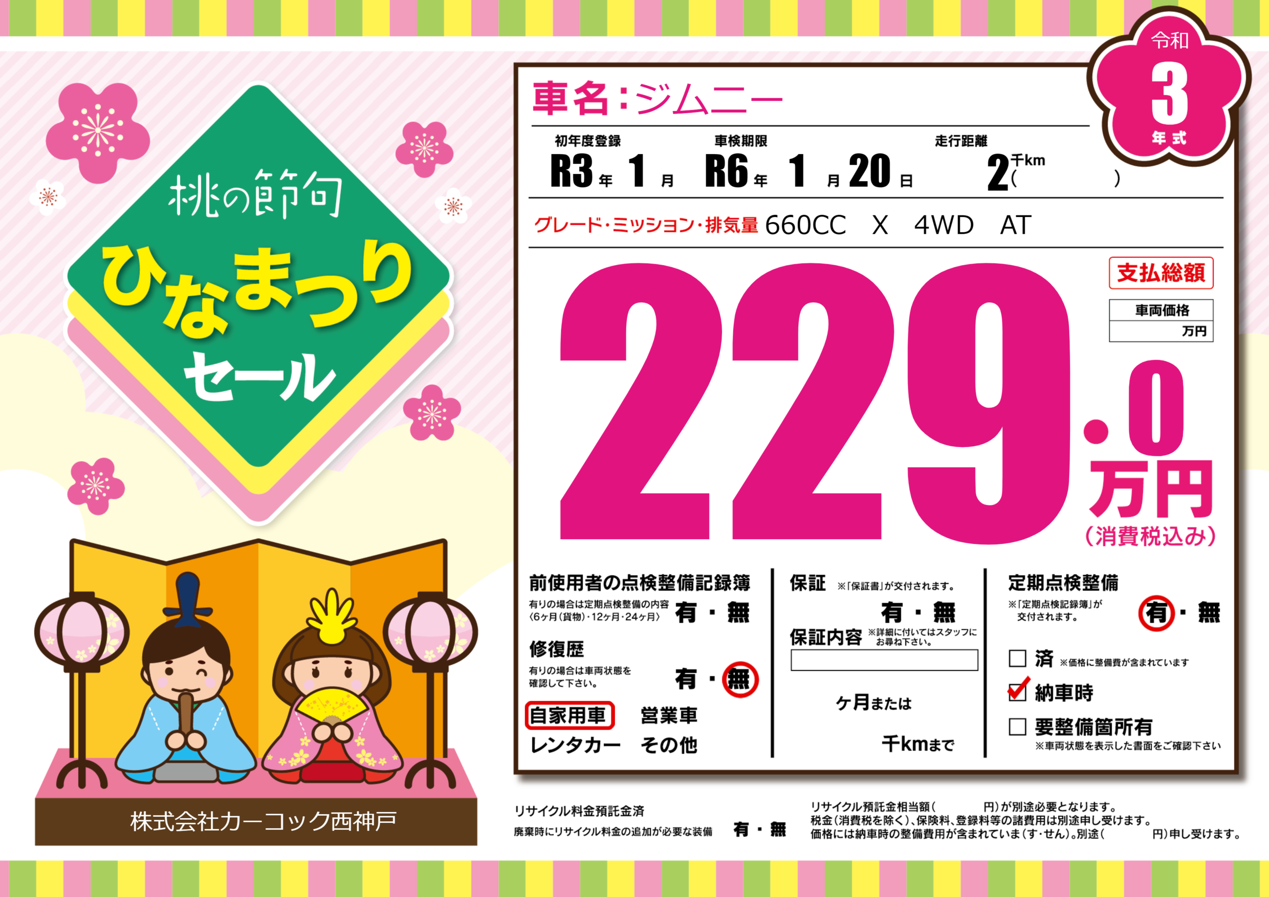 | 走行キロ | 0.2万km | 初年度登録 | R3年1月 |