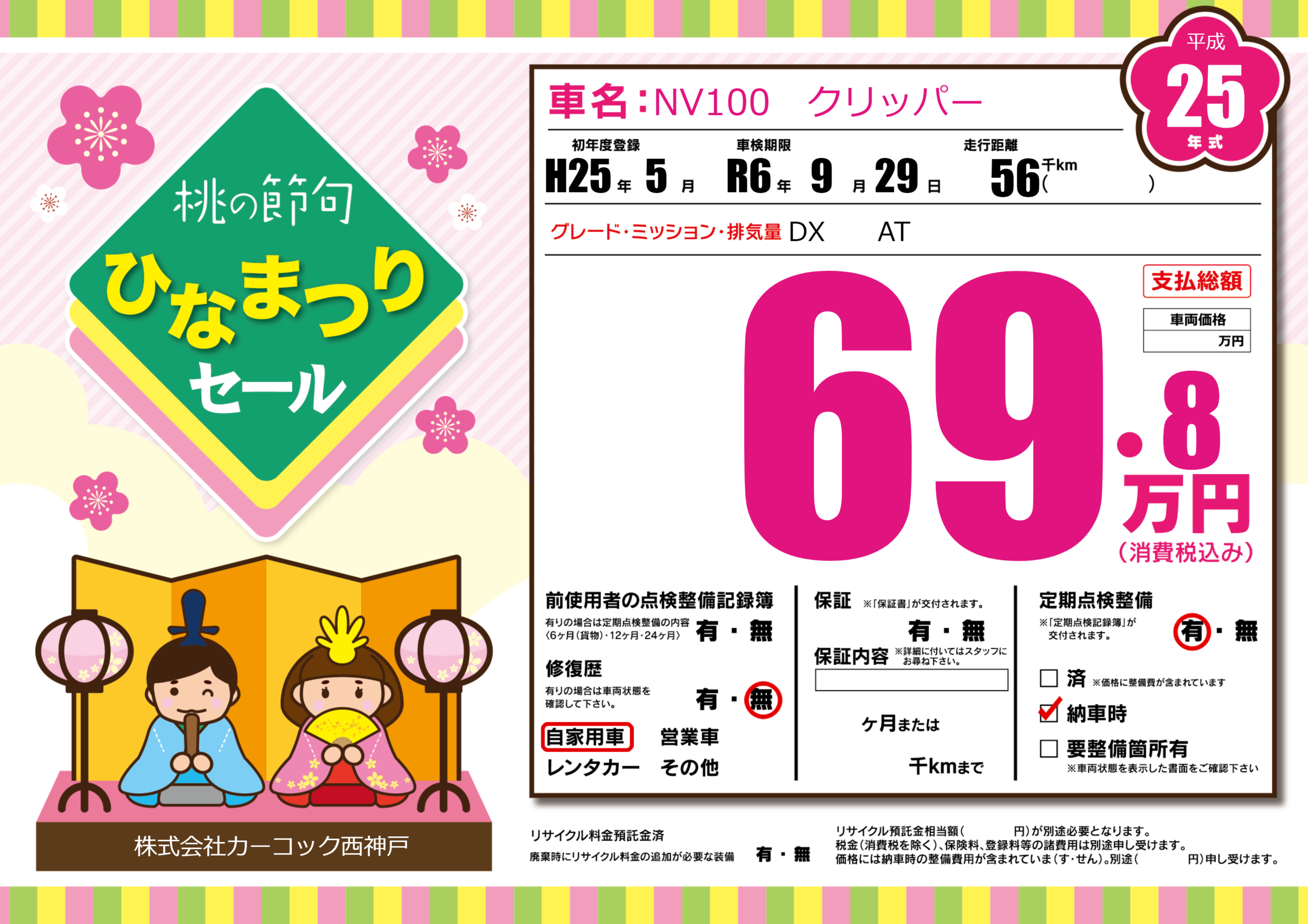 | 定期点検整備 | 定期点検整備あり 納車時あり | ||