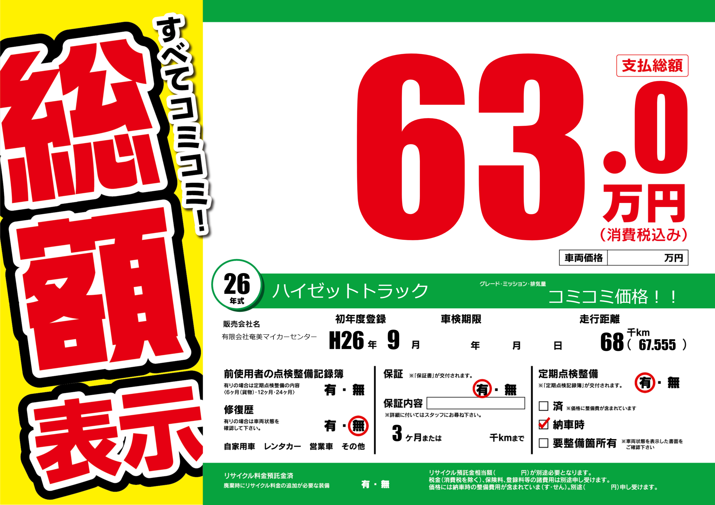 | 定期点検整備 | 定期点検整備あり 納車時あり | ||