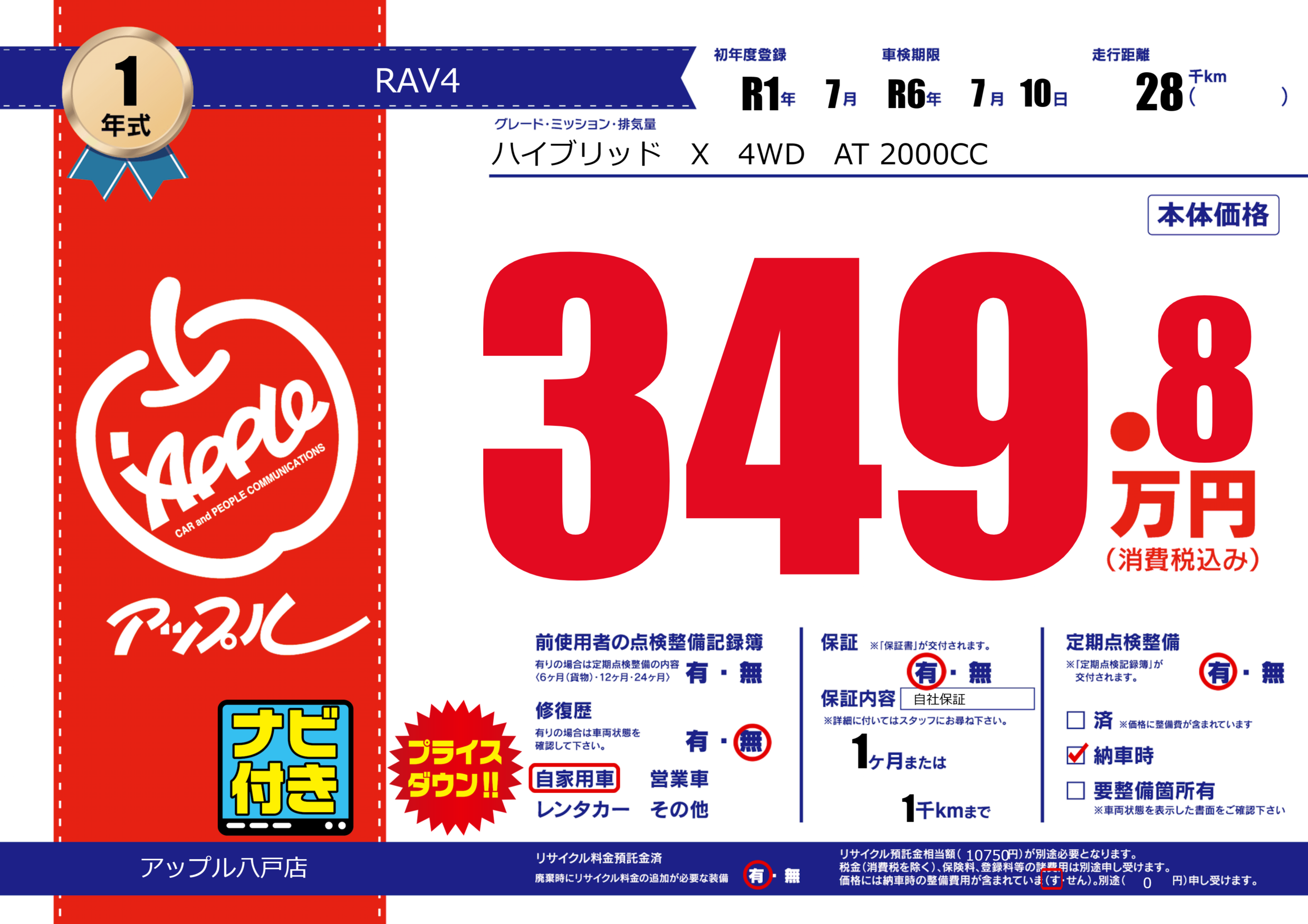 | 車検制限 | R6年 7月 10日 | ||
