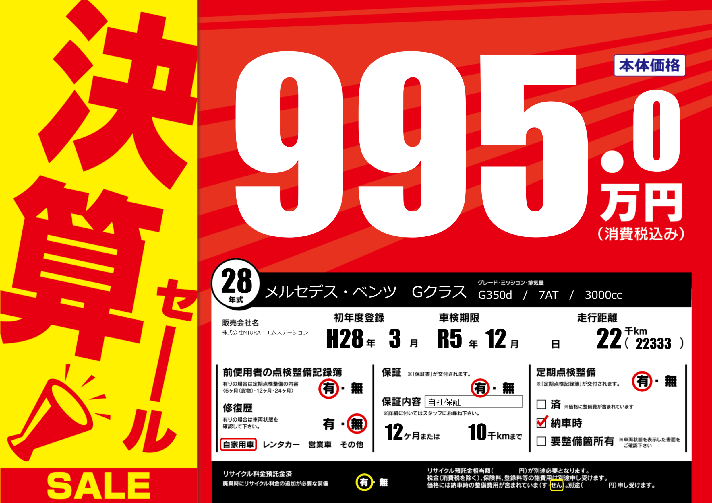 | 車名 | メルセデス・ベンツ Gクラス | グレード ミッション 排気量 |