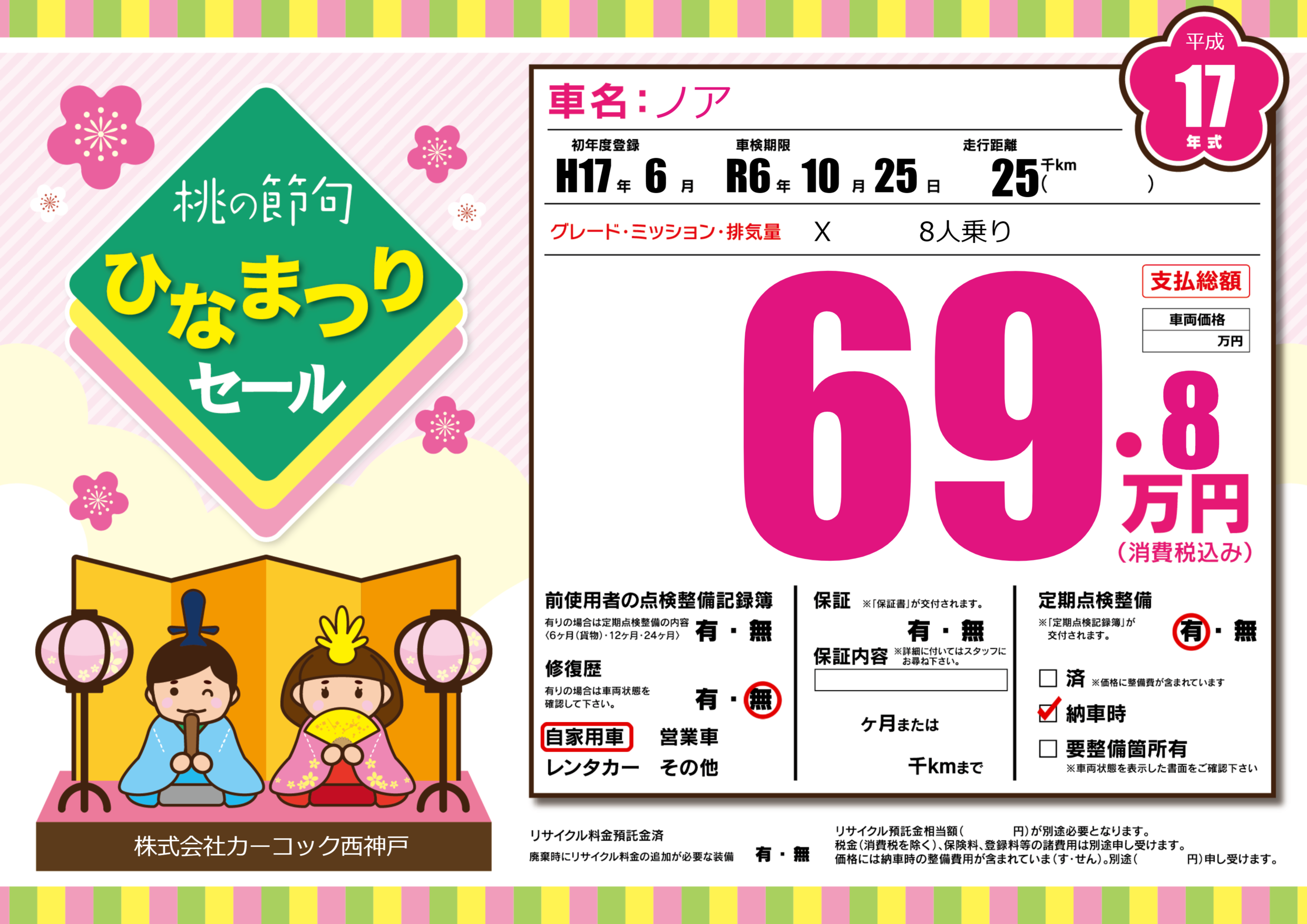 | 定期点検整備 | 定期点検整備あり 納車時あり | ||