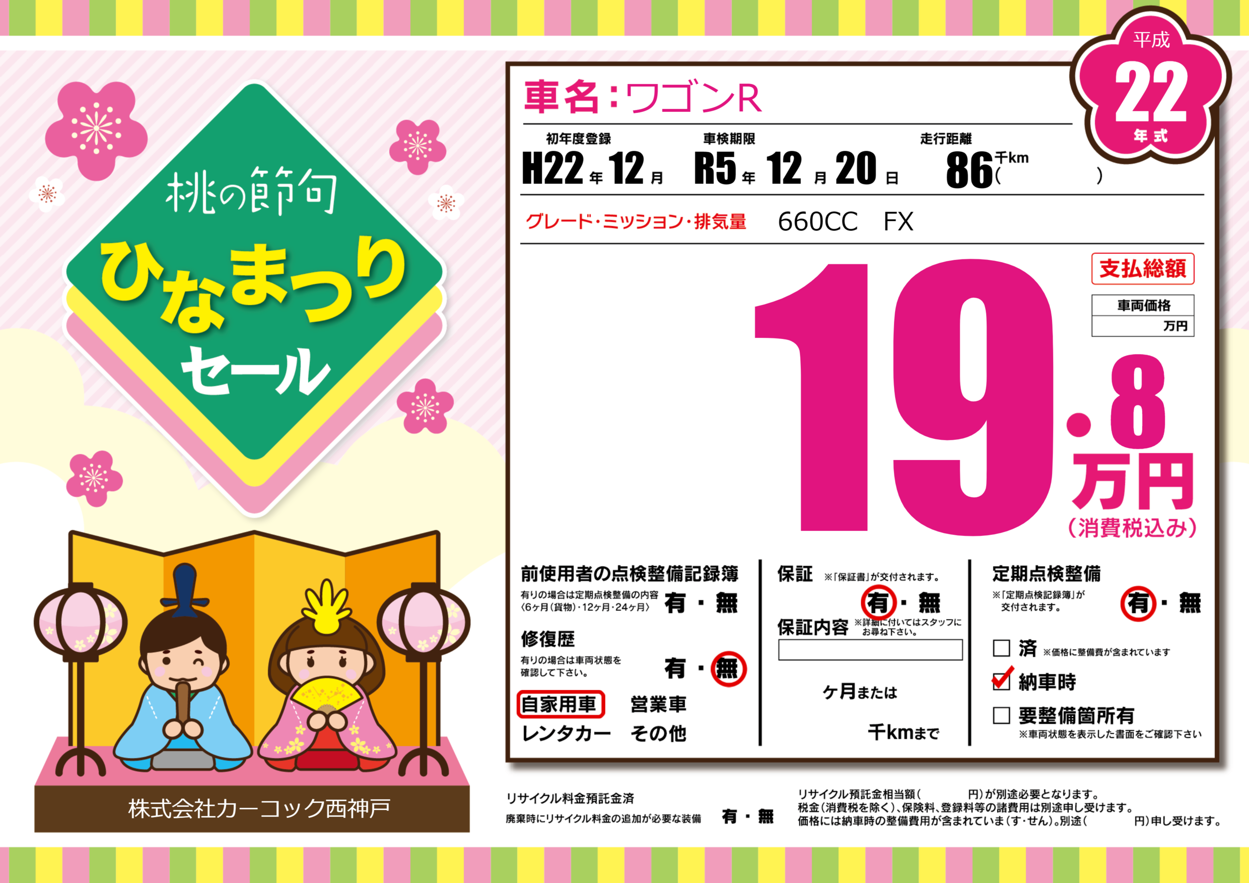 | 定期点検整備 | 定期点検整備あり 納車時あり | ||
