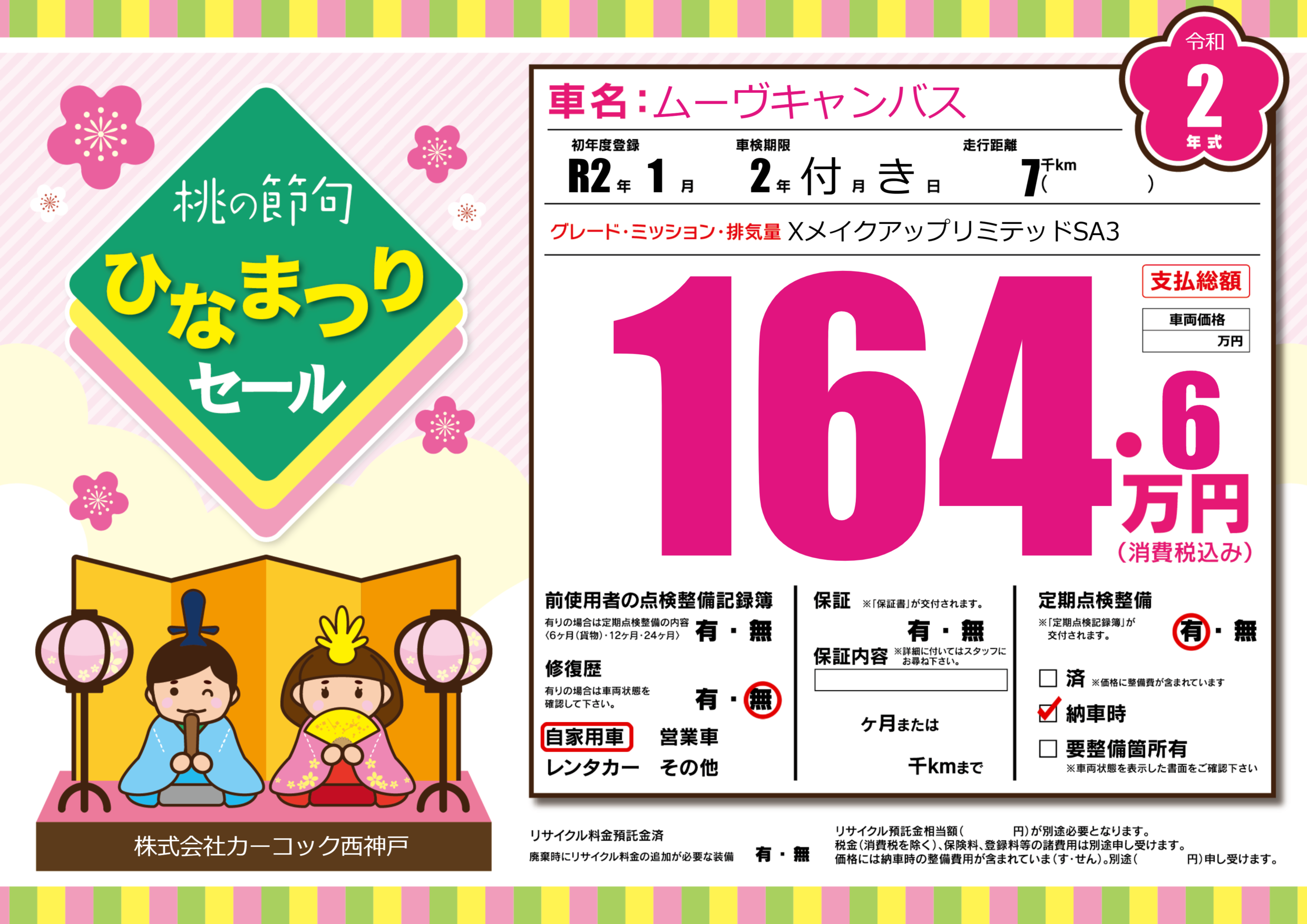 | 車名 | ムーヴキャンバス | グレード ミッション 排気量 |
