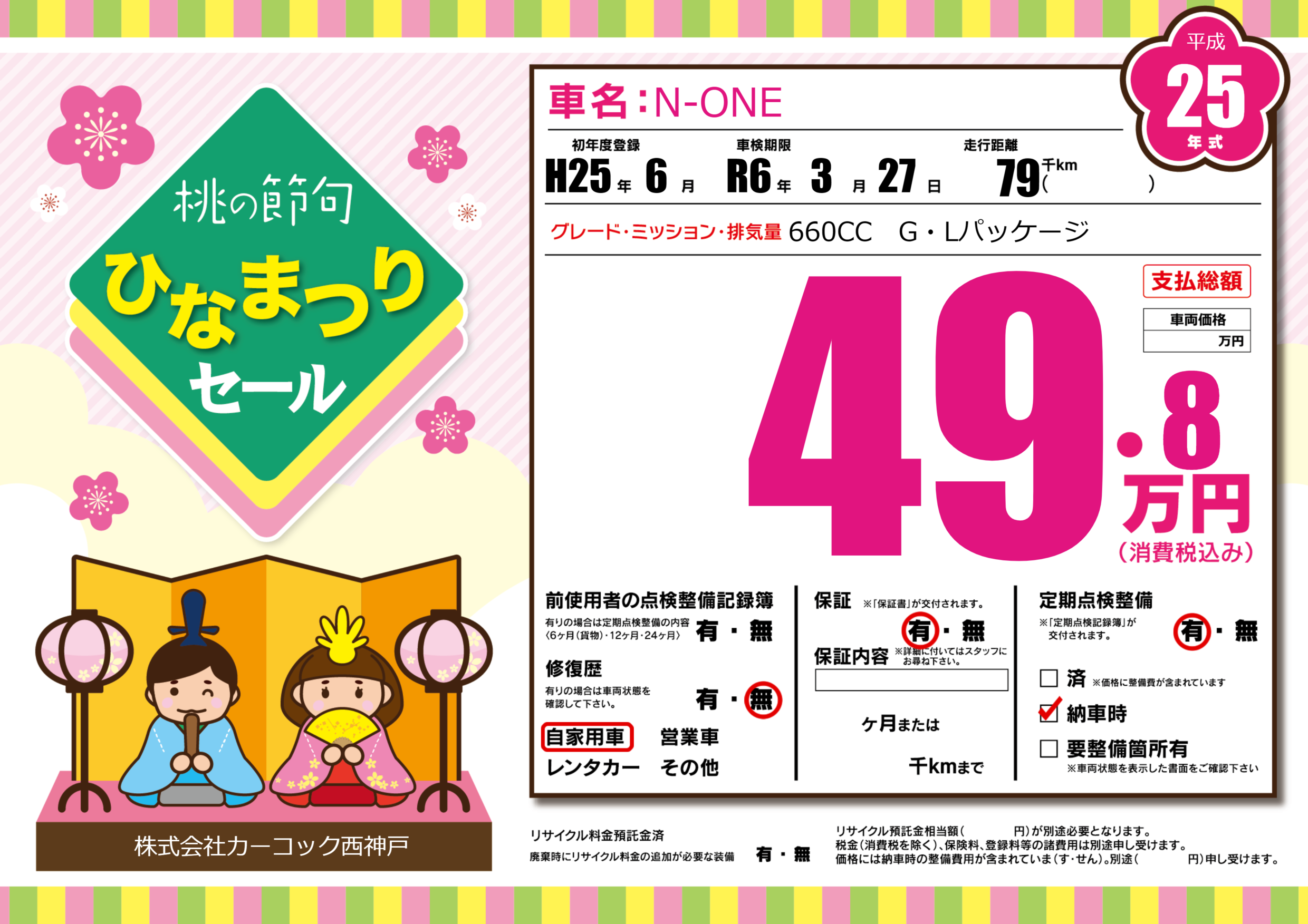 | 定期点検整備 | 定期点検整備あり 納車時あり | ||