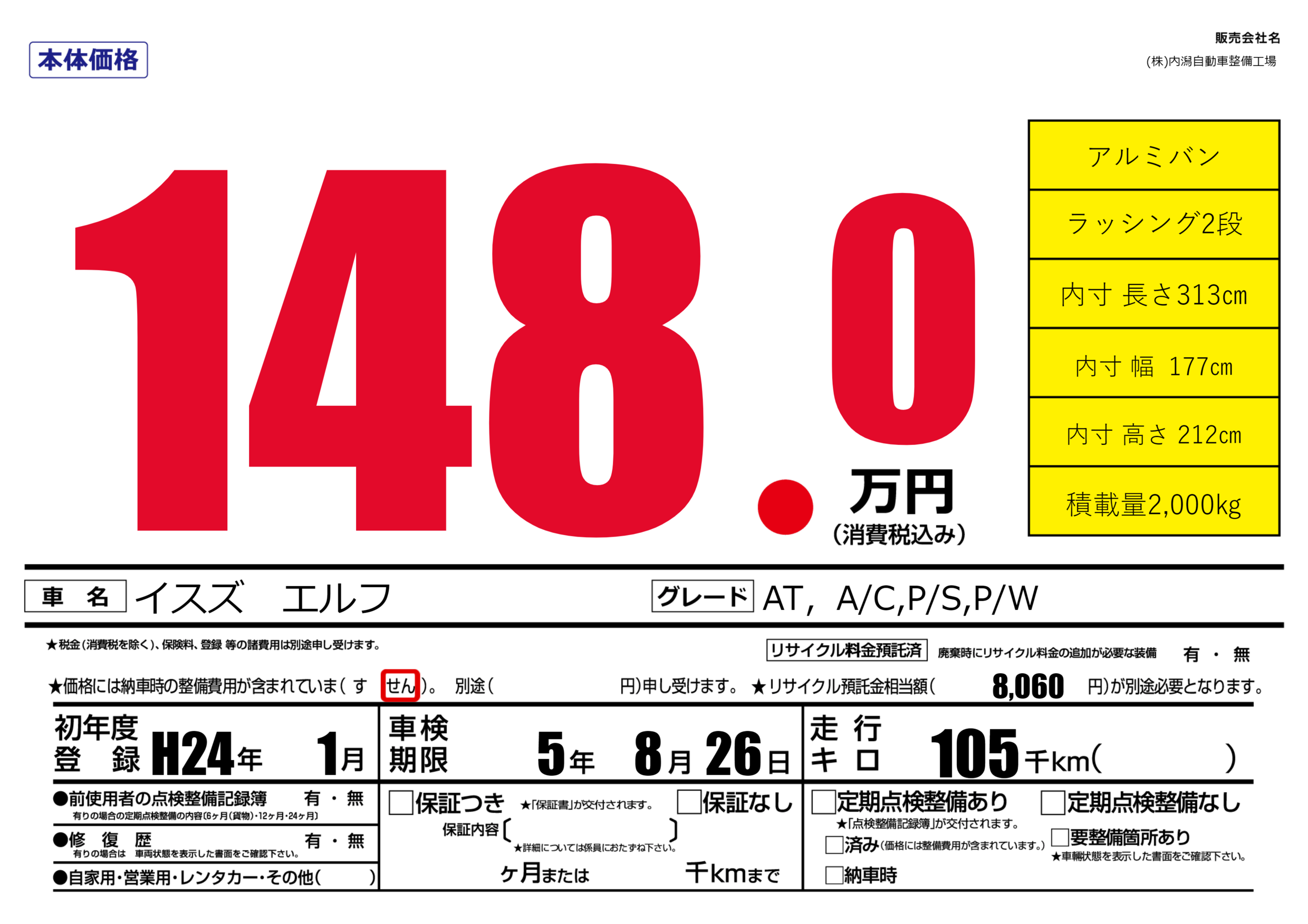| 車名 | イスズ エルフ | グレード ミッション 排気量 |