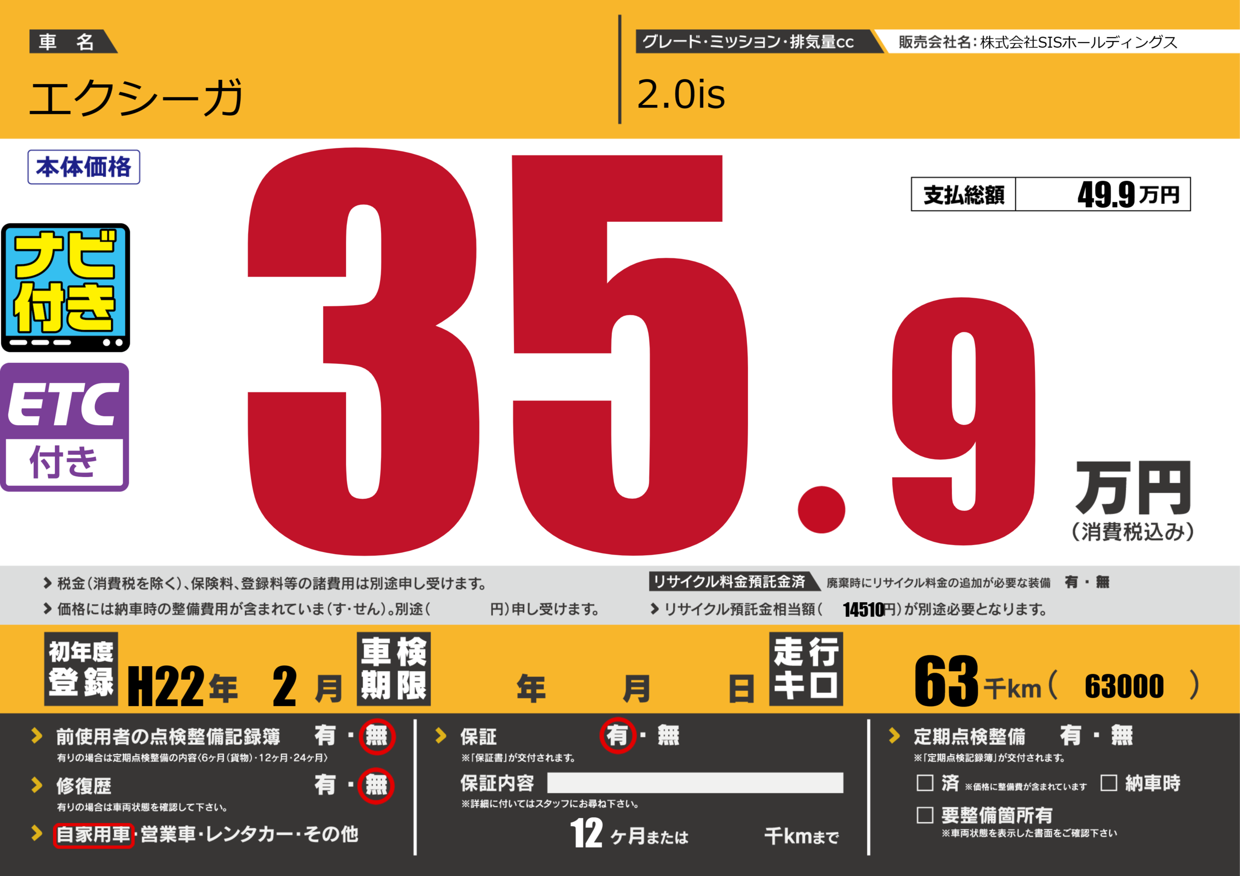 | 走行キロ | 6.3万km | ||