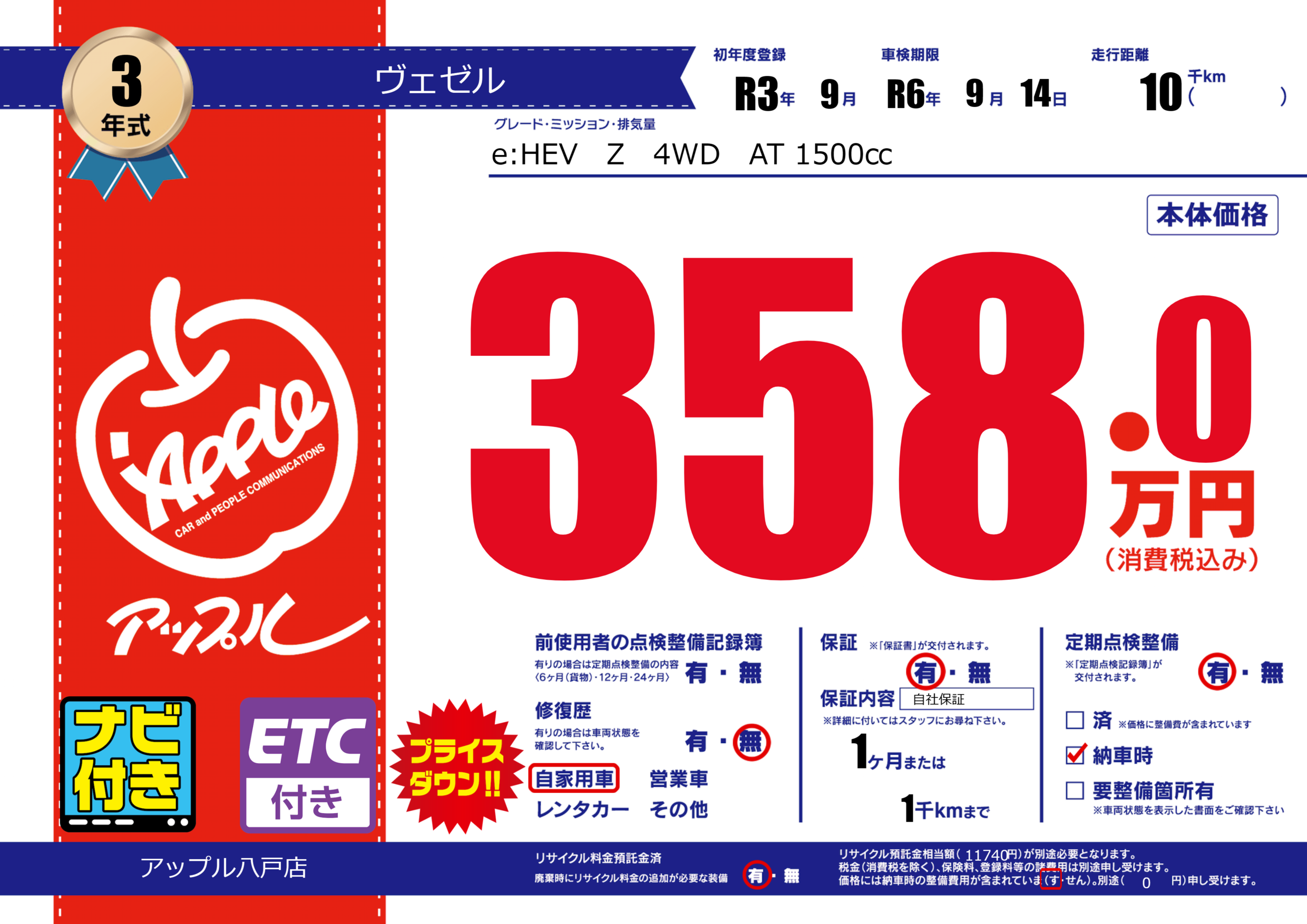 | 走行キロ | 1万km | 初年度登録 | R3年9月 |
