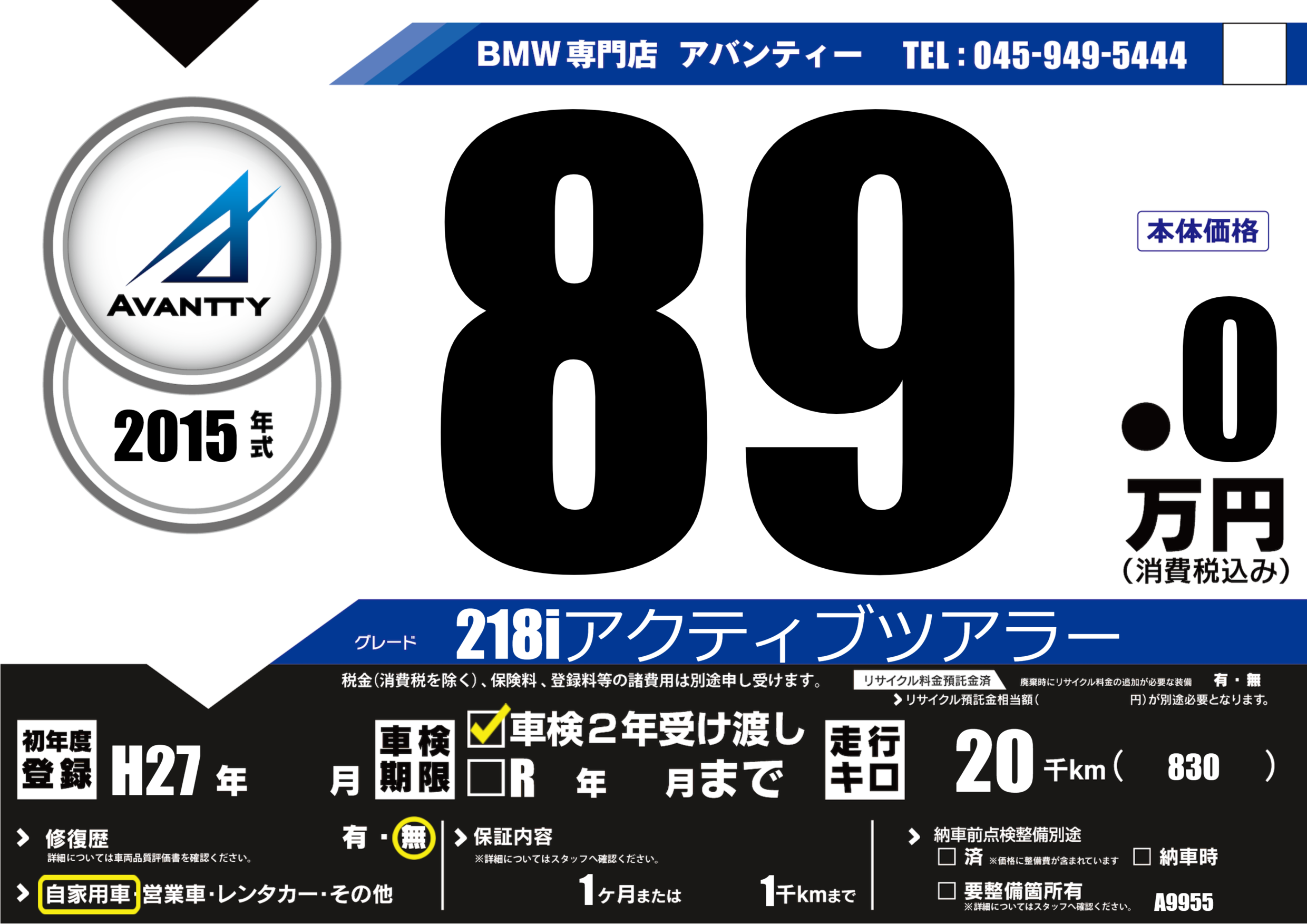 | 走行キロ | 2万km | 初年度登録 | H27年---月 |