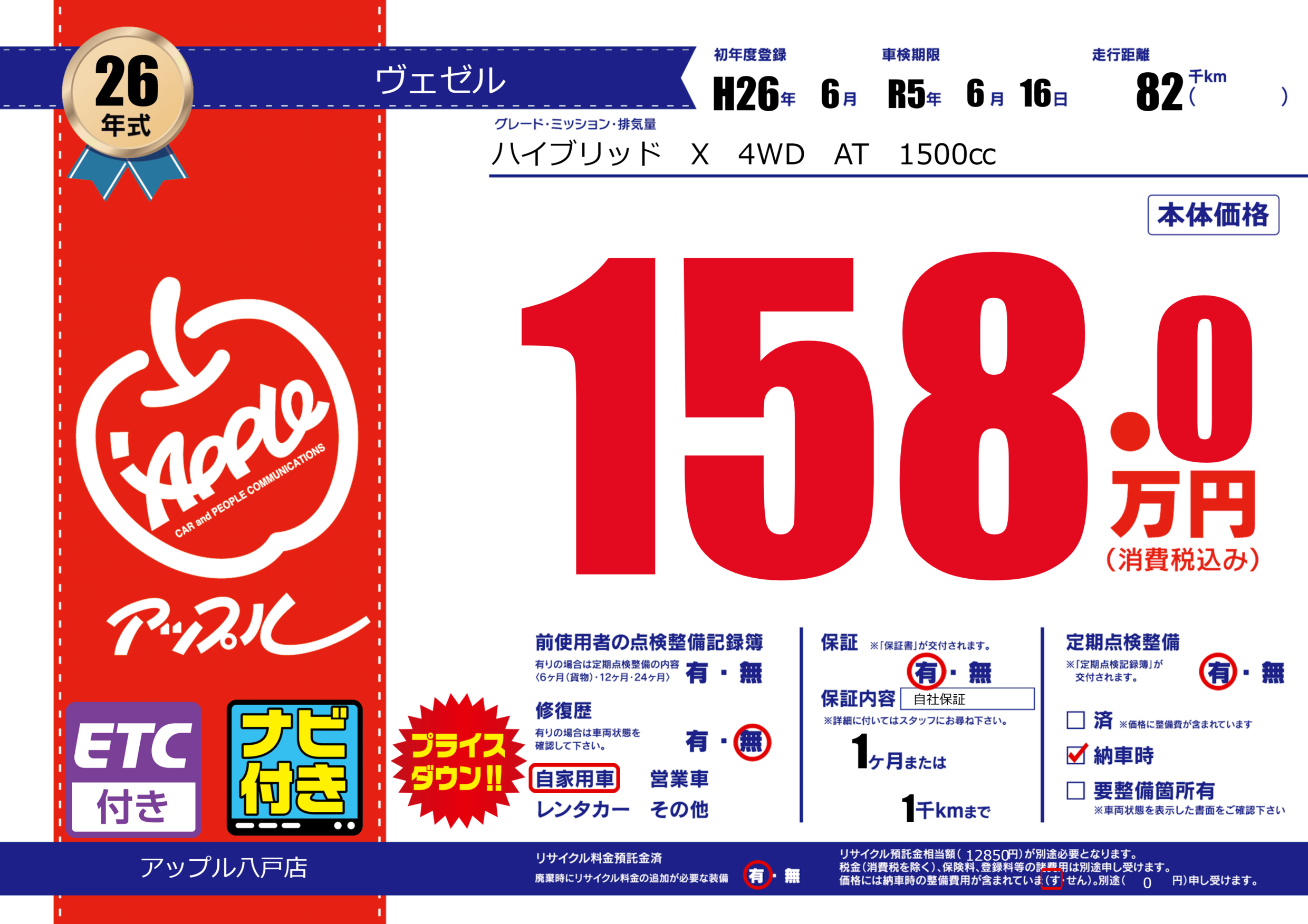 | 車名 | ヴェゼル | グレード ミッション 排気量 |