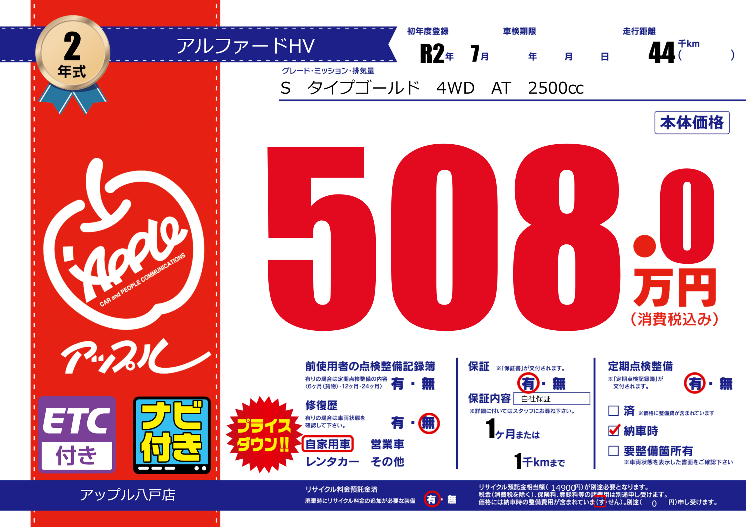 | 車名 | アルファードHV | グレード ミッション 排気量 |