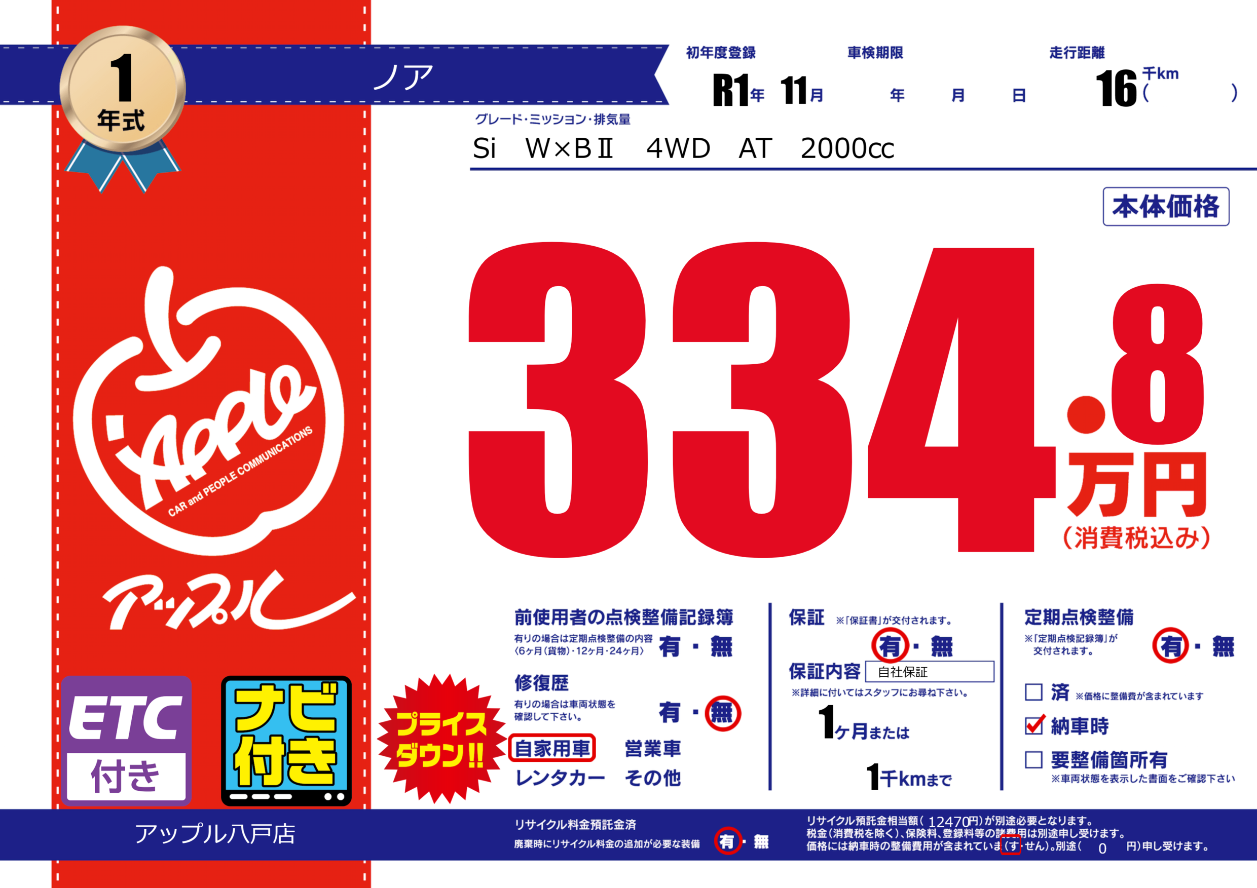 保証付き 保証内容( 自社保証) 1ヶ月または(1)千kmまで |