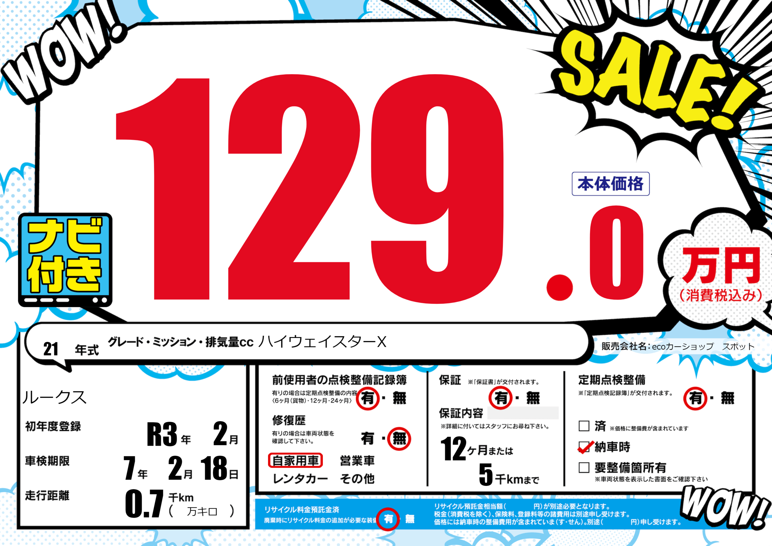 | 車名 | ルークス | グレード ミッション 排気量 |