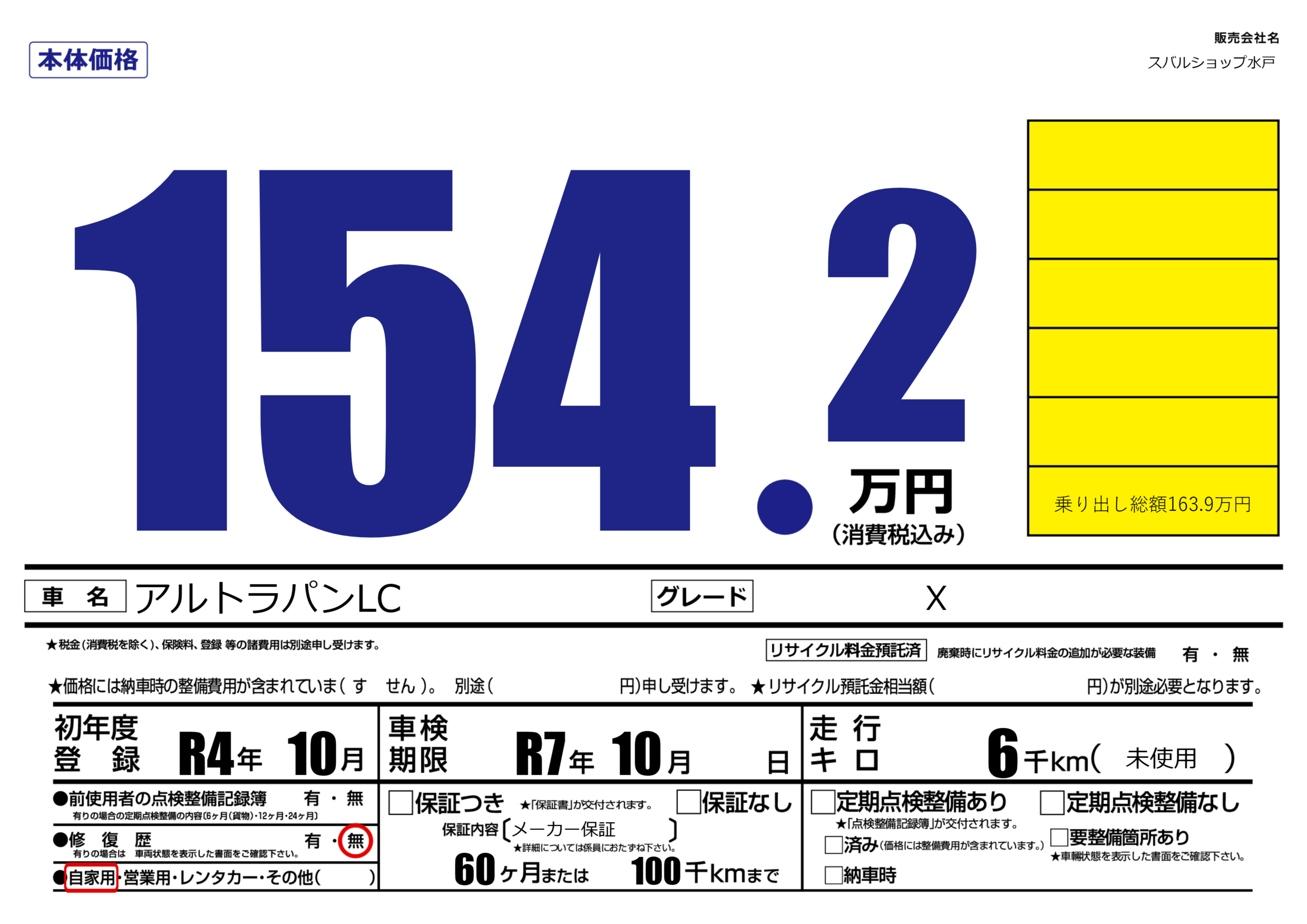 | 走行キロ | 0.6万km | 初年度登録 | R4年10月 |