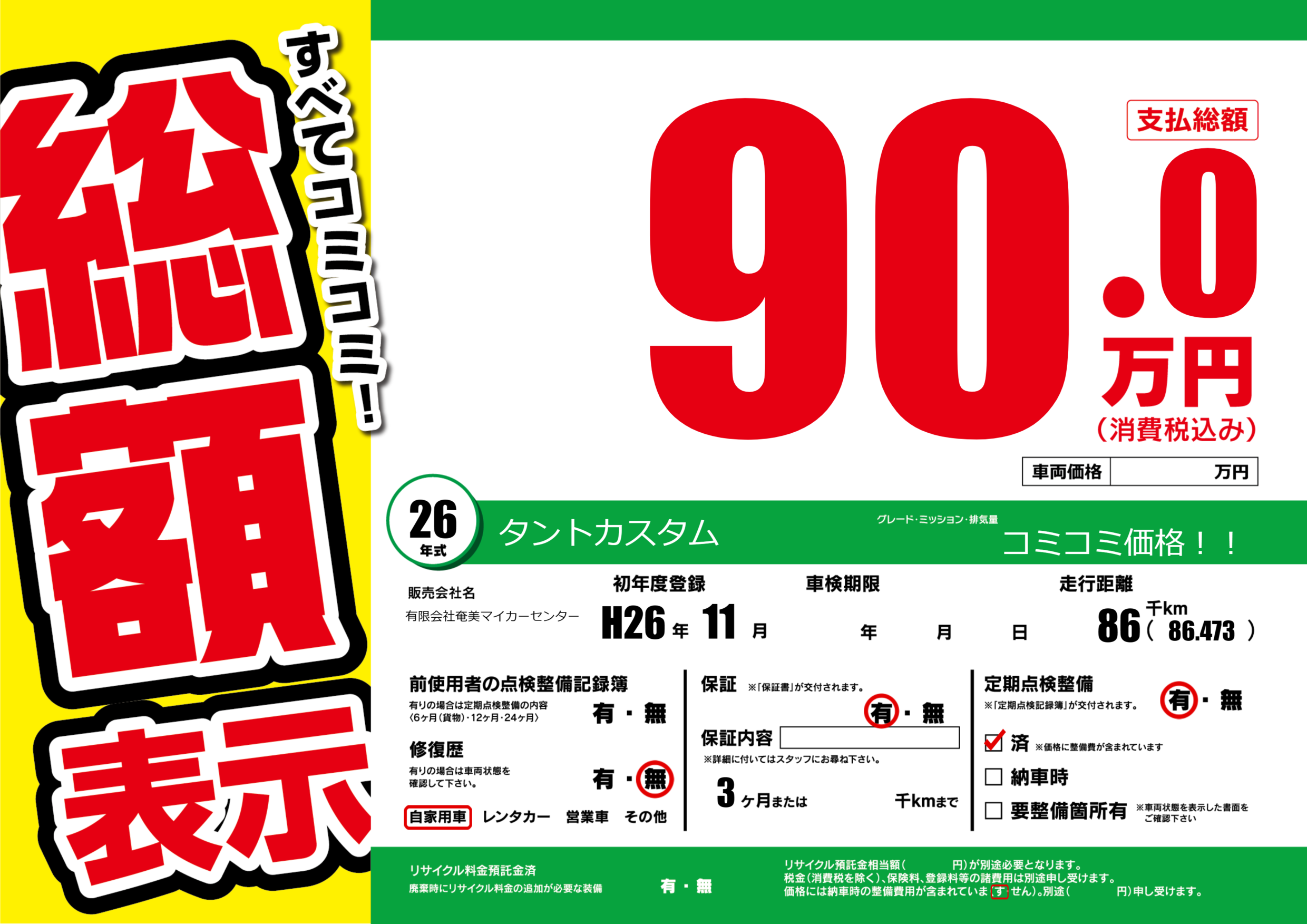 | 定期点検整備 | 定期点検整備あり 定期点検整備済み | ||