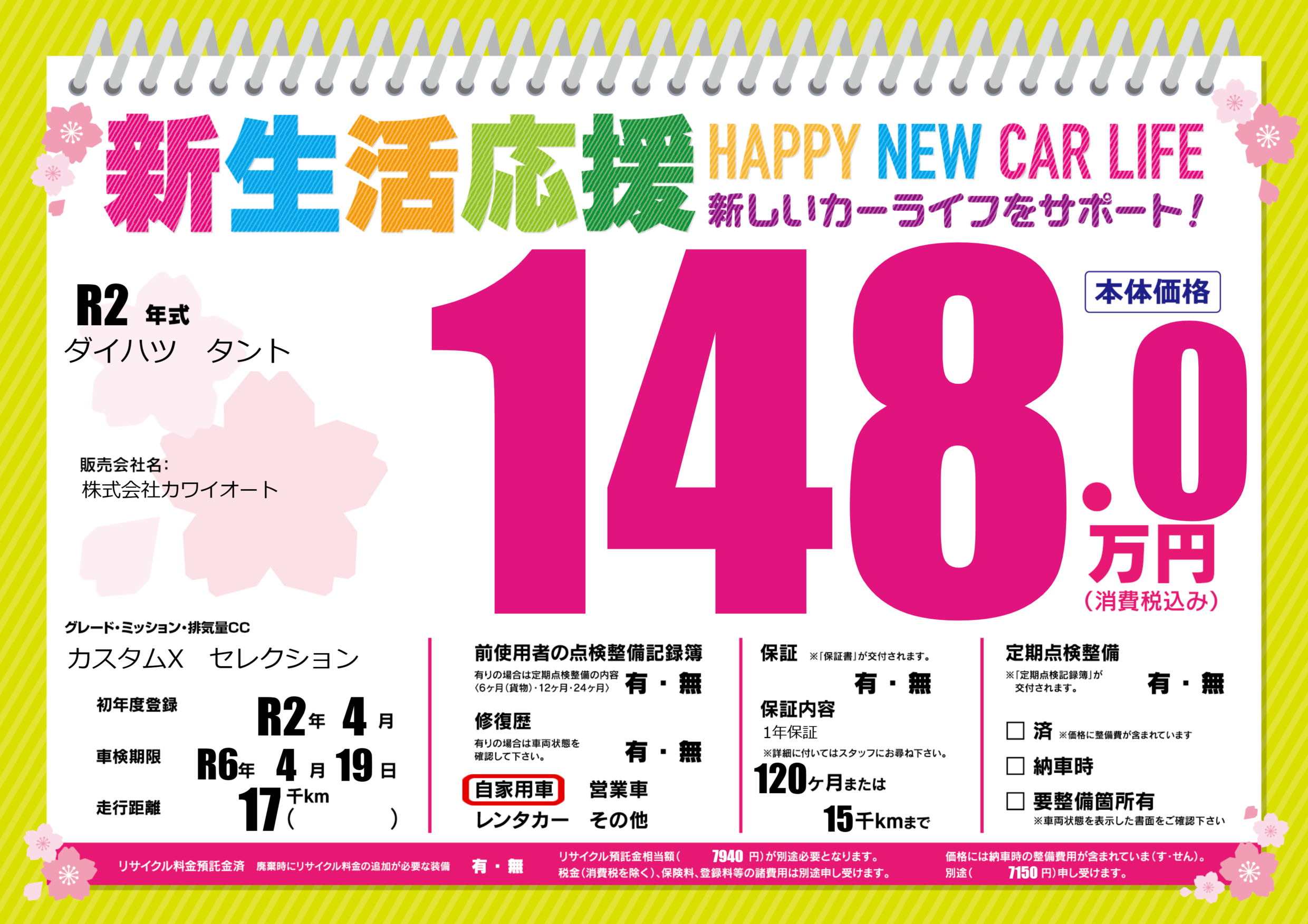 車検制限 | R6年4月19月 |