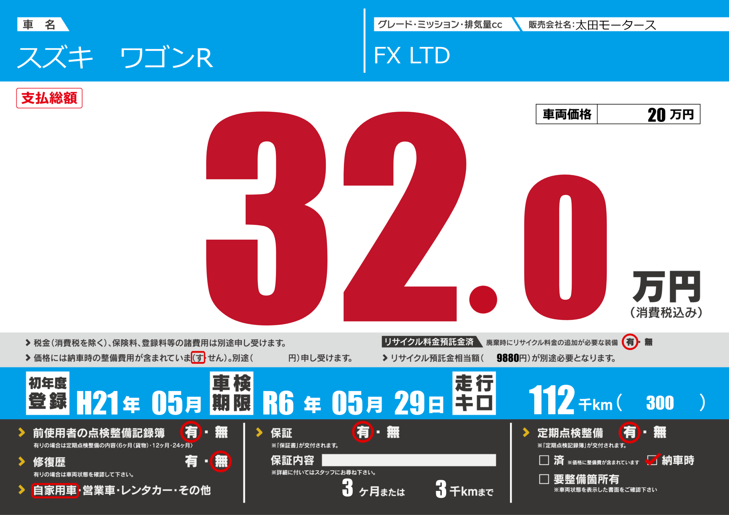 保証付き 保証内容(---) 3ヶ月または(3)千kmまで |