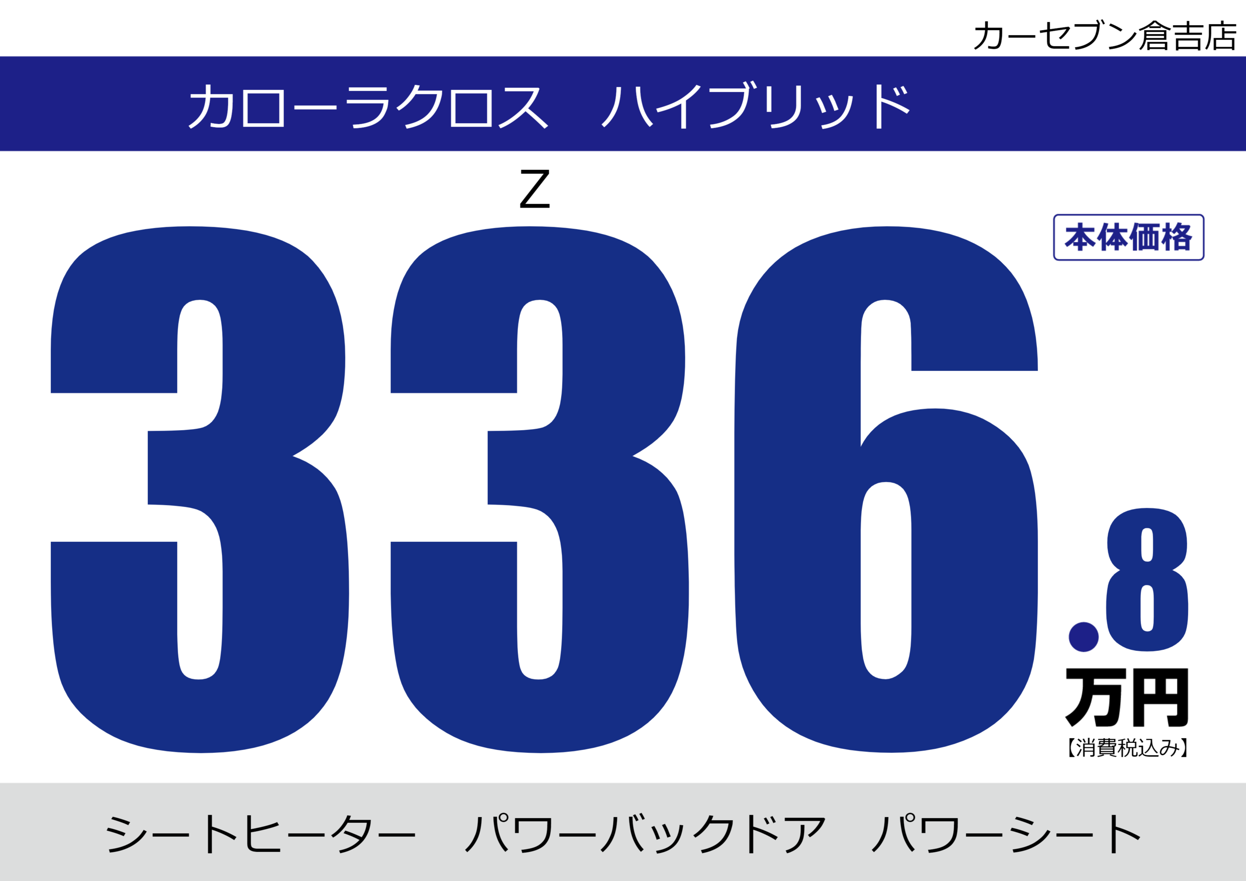 | 車名 | カローラクロス ハイブリッド | グレード ミッション 排気量 |