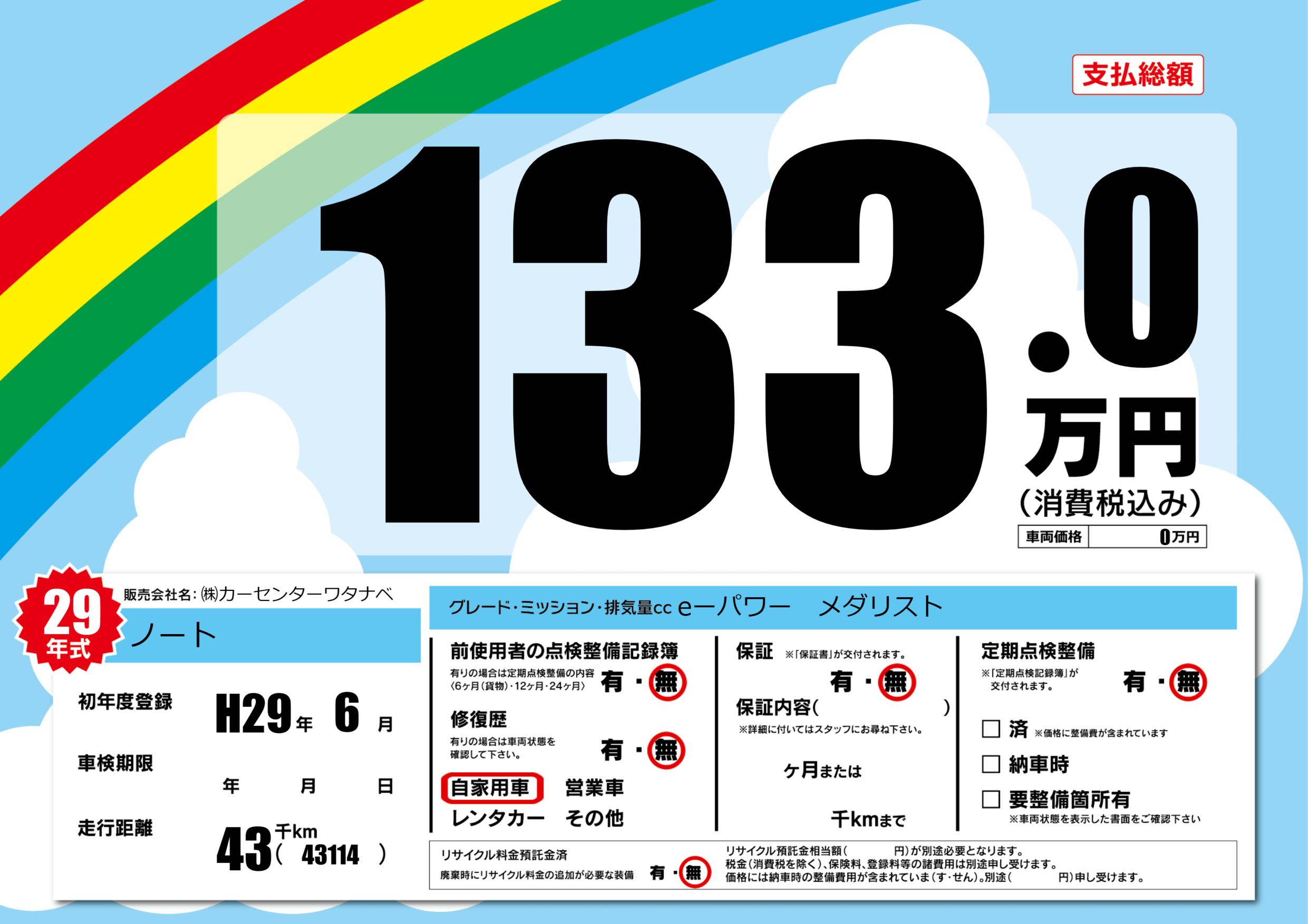 | 定期点検整備 | 定期点検整備なし | ||