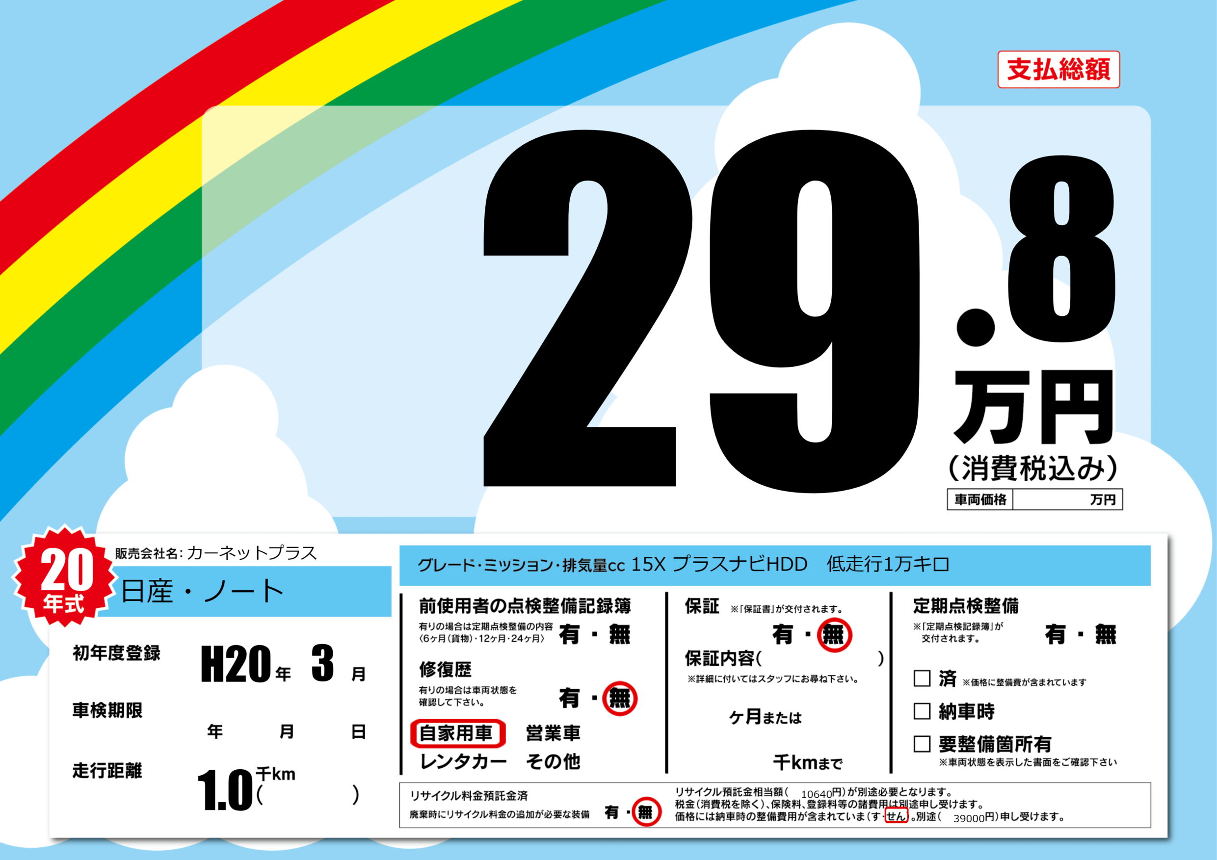 | 車名 | 日産・ノート | グレード ミッション 排気量 |