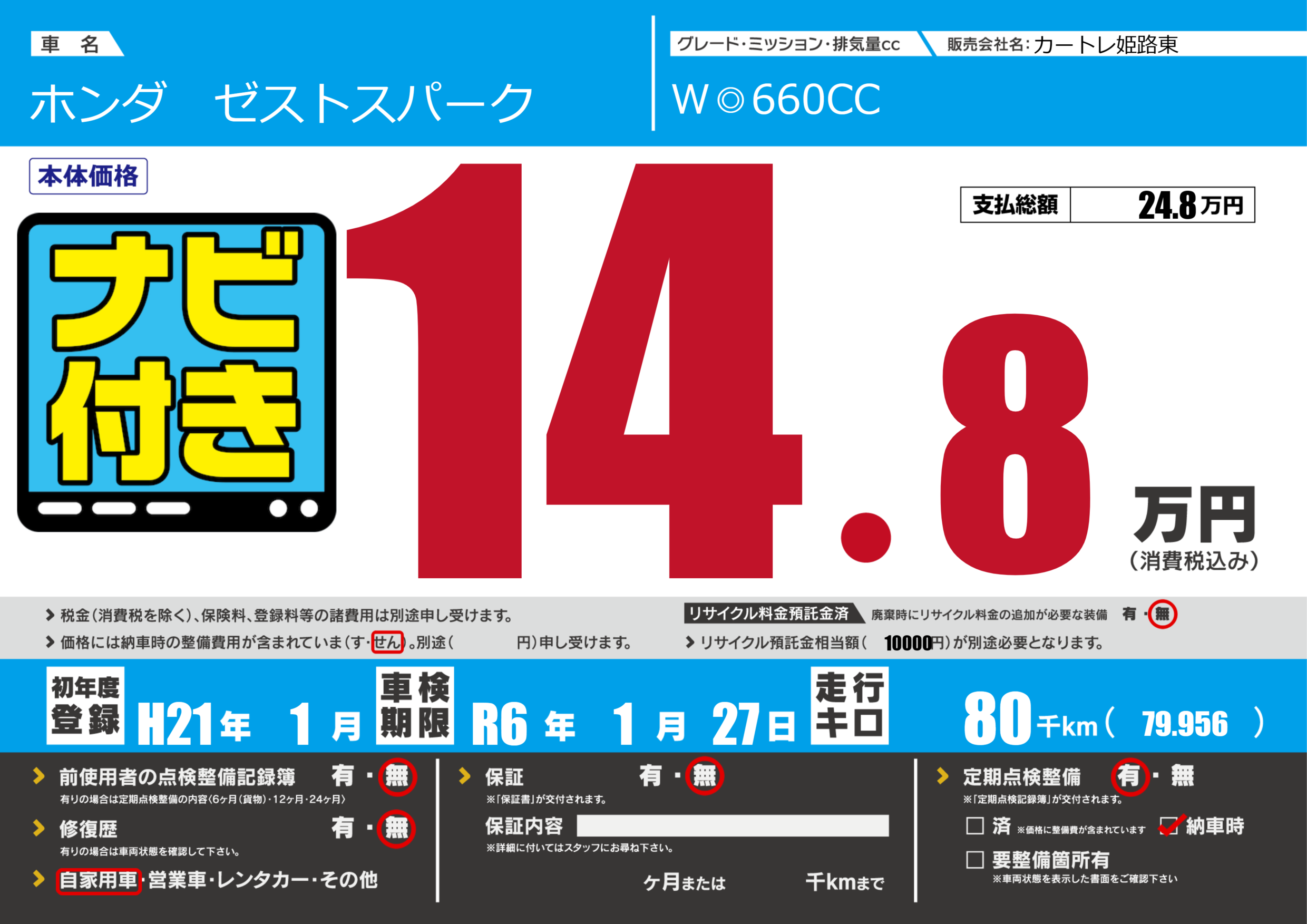 なし | 車検制限 | R6年1月27月 |